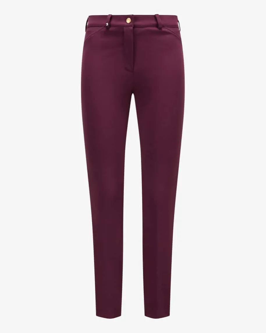 Pepper Jerseyhose für Damen von Pamela Henson in Bordeaux. Das Modell überzeugtdank elastischer, blickdichter Jersey-Qualität als komfortabler und zugleichluxuriöser Travel-Begleiter für stilsichere Damen.