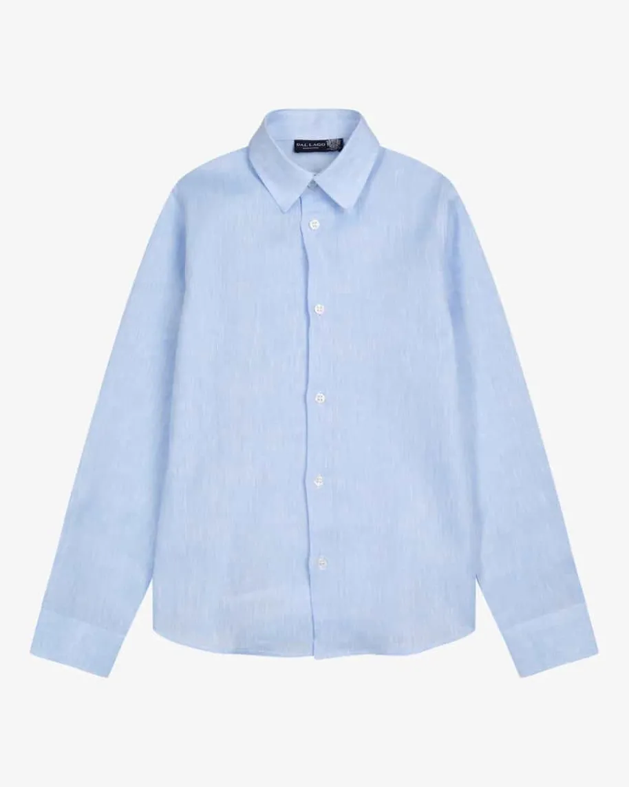 Perth Leinenhemd für Jungen von Dal Lago in Hellblau. Das Modell präsentiertsich mit elegant-klassischen Details und garantiert dank hochwertiger Leinen-Qualität angenehmen Tragekomfort.