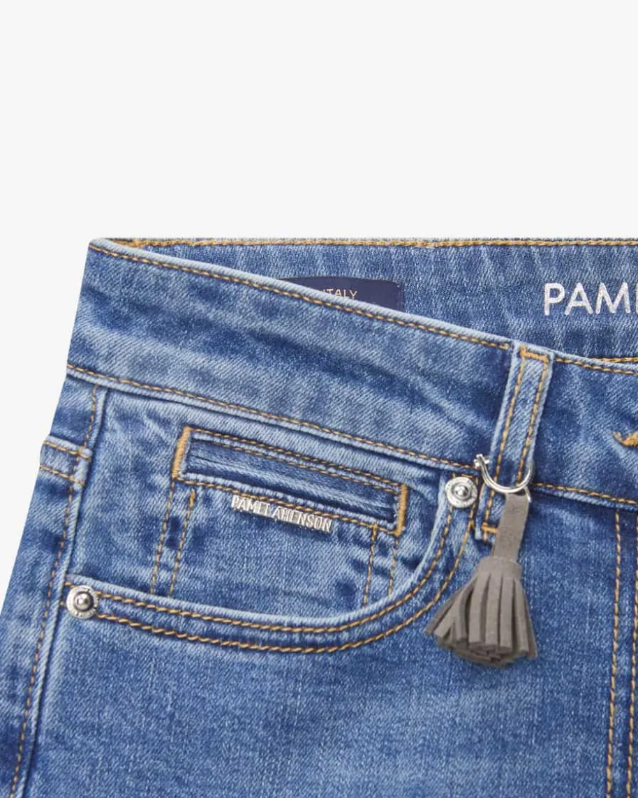 Phcing 7/8-Jeans für Damen von Pamela Henson in Blau. Hochwertige Verarbeitungund modisches Design zeichnen die Modelle des Damenlabels aus. Auch dieseselastische Modell besticht dank leicht verkürztem Bein mit Seitenschlitzen infemininer Aufmachung, während der Washed Effekt einen modischen Look garantiert.