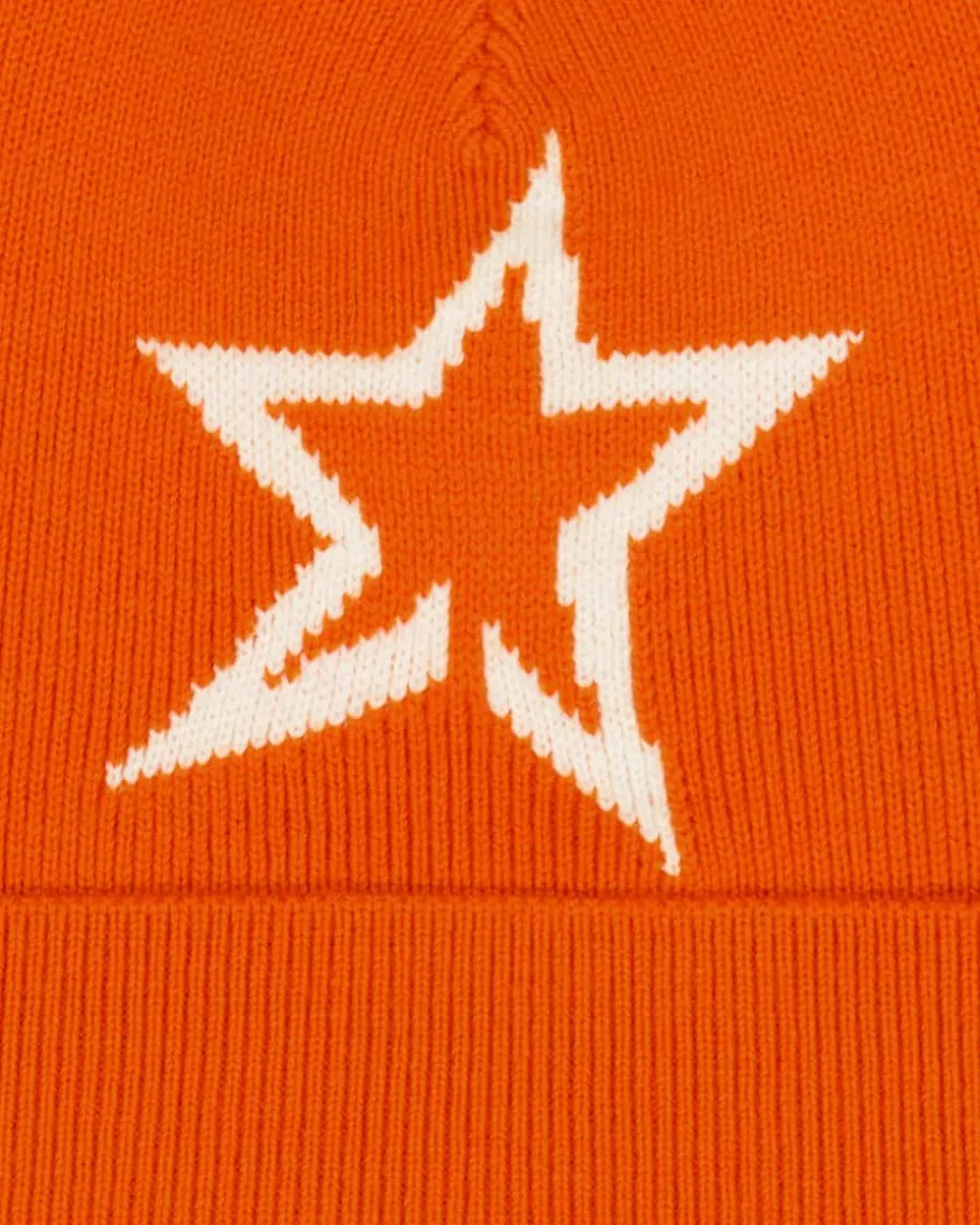 Pillow Mütze für Damen von Perfect Moment in Orange und Weiß. Die extrafeineMerinowoll-Verarbeitung sorgt für angenehme Tragemomente, während der breiteUmschlag sowie das Sternen-Dessin modische Akzente setzen.