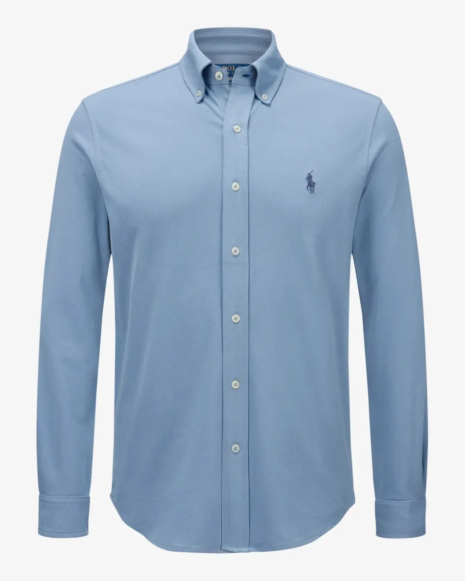 Piqué-Hemd für Herren von Polo Ralph Lauren in Taubenblau.Die hochwertigePiqué-Qualität, eine gerade Passform sowie diecharakteristische Logo-Stickereiauf der Brust machen das Modell des US-Labels zu einemKlassiker mit sportiverals auch moderner Note. Die durchgehende Knopfleisteverleiht dem Polo-Shirteinen legeren Twist in schlichter Hemd-Optik.