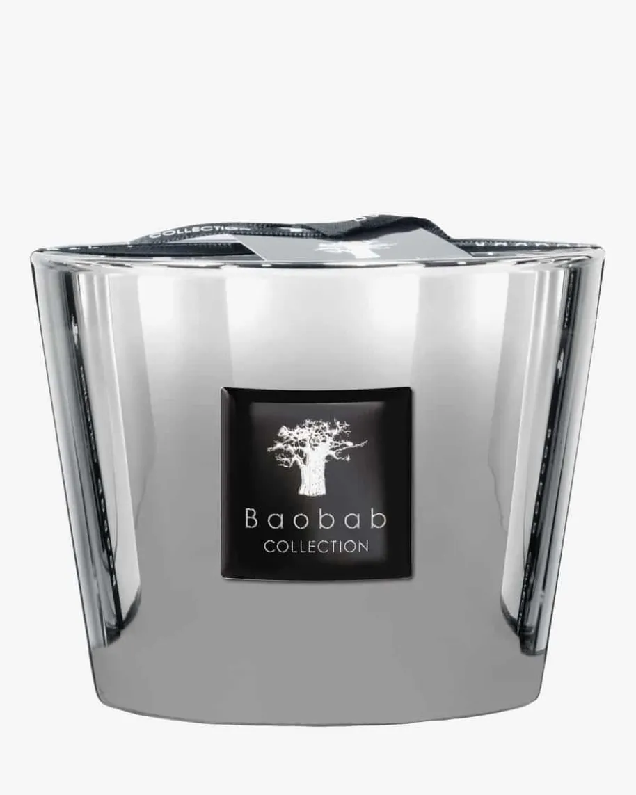 Platinum Kerze Von Baobab in Grau. Die Duftkerze Platinum ist das Wahrzeichender Marke. Ihr edles Glas lässt die Flammen durchflackern und verleiht IhremInterieur eine unvergleichliche Ausstrahlung, während die Kerze einen Duft mitfrischen Noten verströmt.