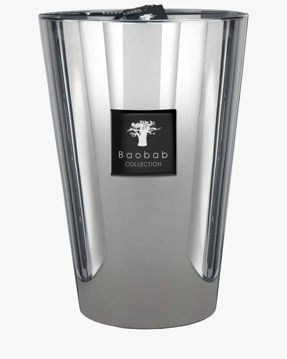 Platinum Kerze Von Baobab in Grau. Die Duftkerze Platinum ist das Wahrzeichender Marke. Ihr edles Glas lässt die Flammen durchflackern und verleiht IhremInterieur eine unvergleichliche Ausstrahlung, während die Kerze einen Duft mitfrischen Noten verströmt.