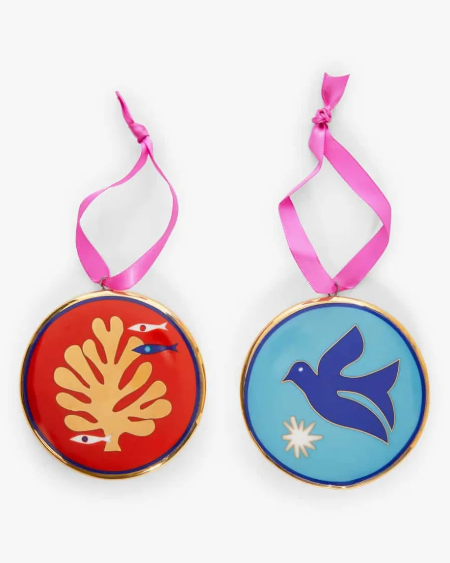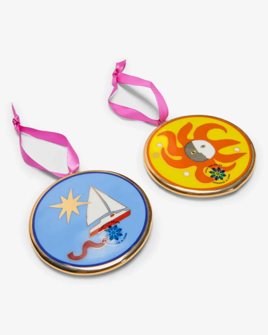 Playa Ornament Anhänger-Set von Jonathan Adler in Bunt und Gold. Der New YorkerStar-Keramiker präsentiert mit seinen Kreationen einzigartige Interior-Designs.Auch dieses Porzellan-Anhänger-Set begeistert mit farbenfrohen Motiven sowiegoldfarbenen Details und verleiht ihrem Zuhause einen dekorativen Touch.