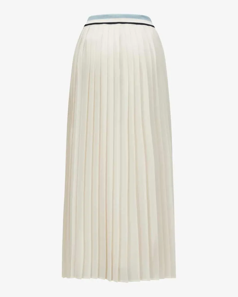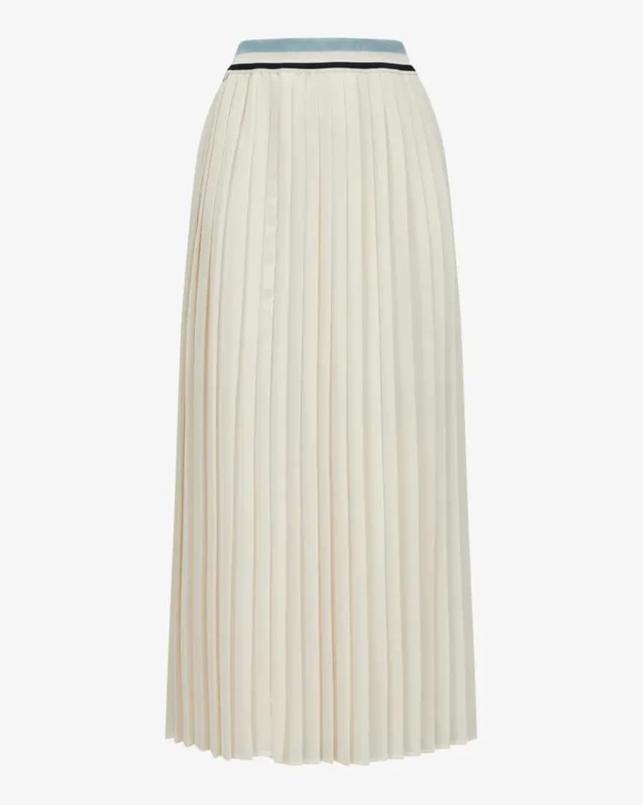 Plisseerock für Damen von Moncler in Creme. Dieses Modell präsentiert sich dankGummibund mit Kontrast-Streifen modisch-sportiv, während die klassische Plissee-Optik für ein stilvolles Gesamtbild sorgt. Der geschlitzte Unterrock vollendetden Look harmonisch.