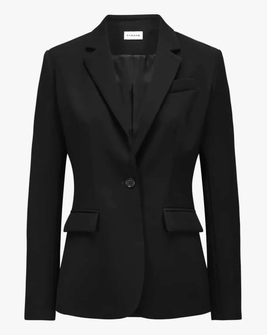 Pocker25 Blazer für Damen von Parosh in Schwarz. Die Marke steht für verspielteDesigns mit Vintage-Flair – farbenfrohe Prints, Glitzer und Retro-Vibes made inItaly. Das Modell in taillierter Passform und angenehmer Haptik, überzeugt mitcleaner Aufmachung und avanciert somit zu einem treuen Begleiter, der sichvielseitig kombinieren lässt.