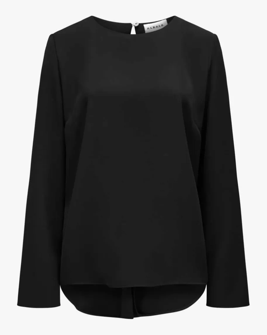 Pocker25 Bluse für Damen von Parosh in Schwarz. Die Marke steht für verspielteDesigns mit Vintage-Flair – farbenfrohe Prints, Glitzer und Retro-Vibes made inItaly. Das Modell überzeugt in fließender Qualität und cleanem Dessin, währenddie angenehme Haptik das Gesamtbild gekonnt ergänzt. Ein zeitloser Begleiter dersich vielseitig stylen lässt.