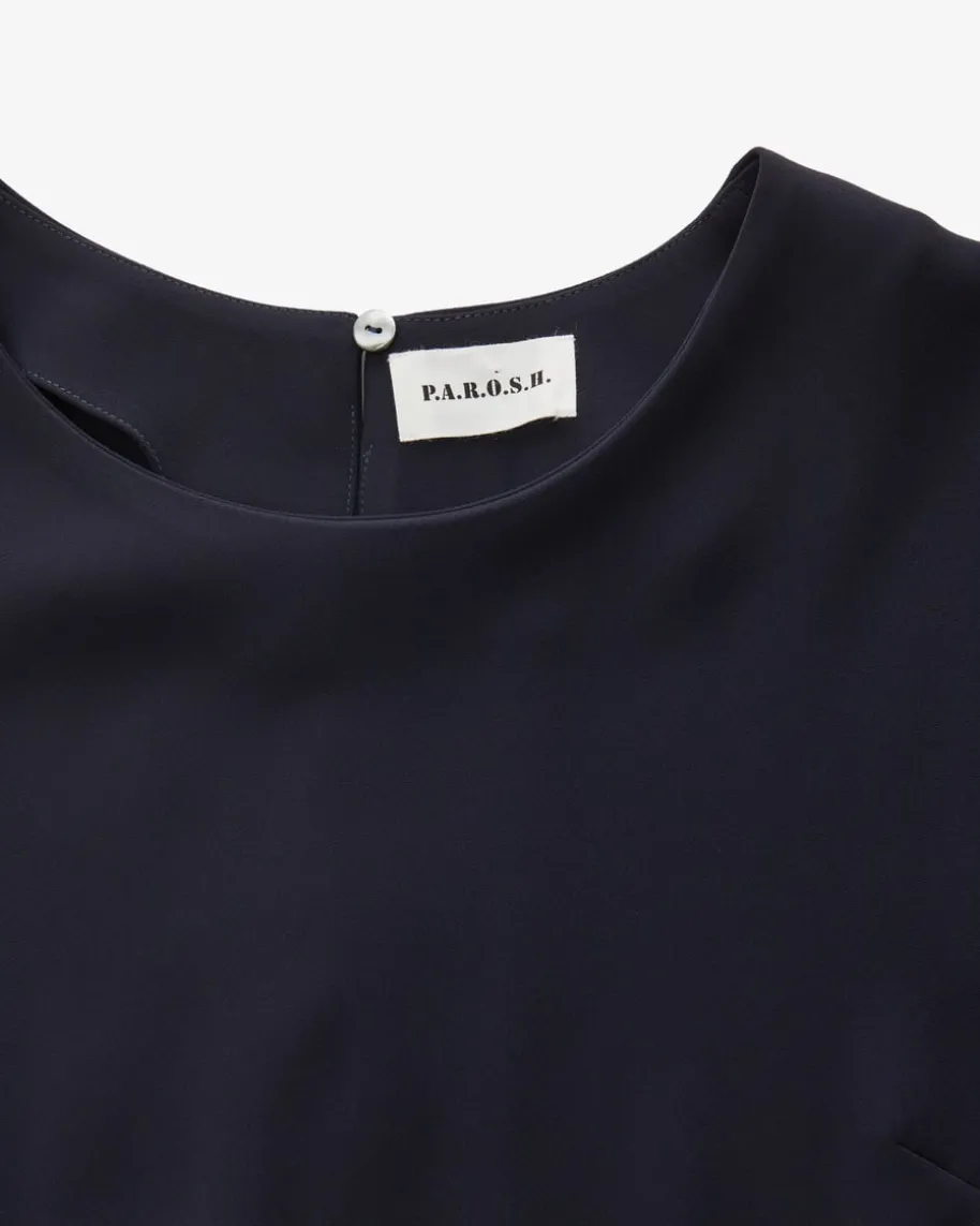 Poker25 Jumpsuit für Damen von Parosh in Marine. Das Modell besticht dankfließender Material-Qualität und weitem Bein mit angenehmem Tragekomfort,während das Taillenband sowie die Trompetenärmel einen femininen Look kreieren.