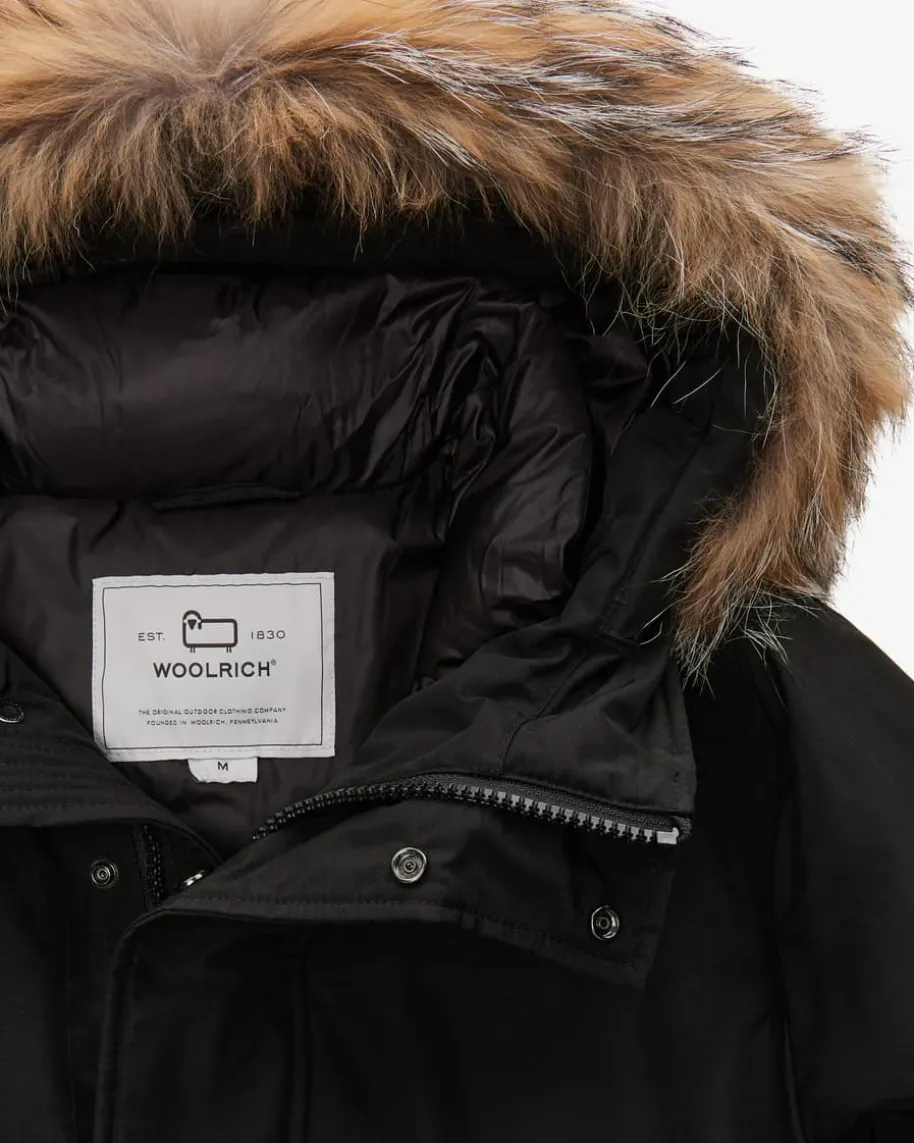 Daunenjacke für Herren von Woolrich in Schwarz. 1830 von John Rich inPennsylvaniagegründet, erfreute sich das Label damals schon großer Beliebtheit – vor allemim Outdoor-Bereich. Robuste funktionale Jacken, Parkas und Mäntel standen dabeiim Vordergrund und bilden, neben der dazugekommenen Freizeitmode, nach wie vorimmer noch den Mittelpunkt der vielseitigen Kollektionen von Woolrich. DasModell begeistert mit zeitlosem Design und wärmespendender Daunen-Füllung,während der abnehmbare Echtfellbesatz einen luxuriösen Charme verleiht.