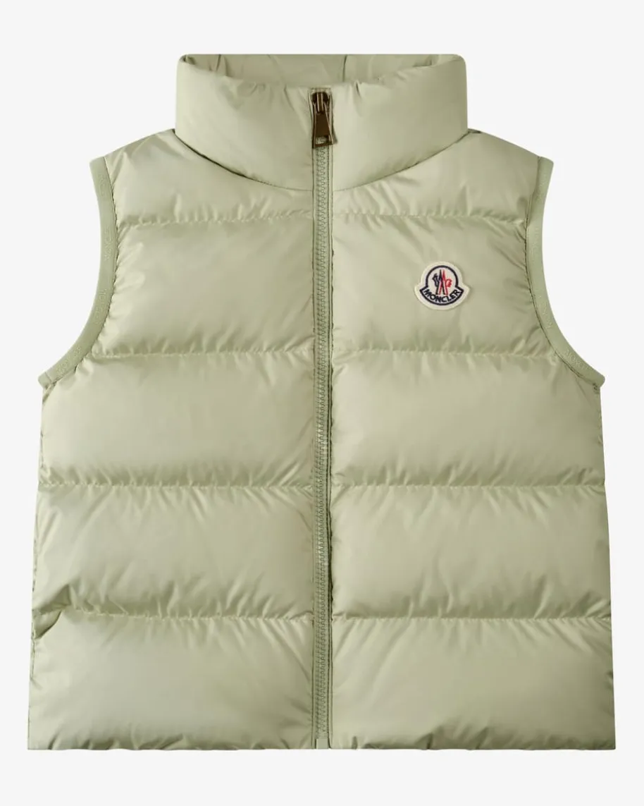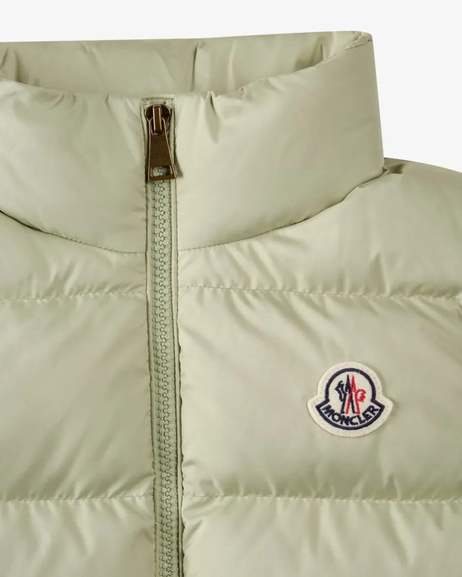 Prudence Daunenweste für Mädchen von Moncler Enfant in Salbei. Das gesteppteModell besticht dank der modernen Pastell-Optik in niedlicher Aufmachung,während die hochwertige Daunen-Feder-Füllung den perfekten Begleiter für kalteTage schafft.