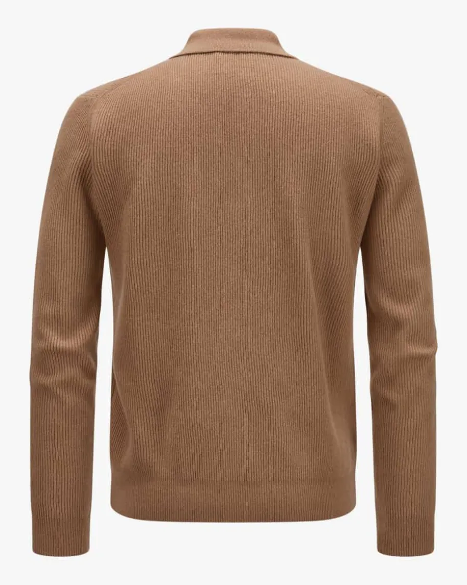 Pullover für Herren von Lardini in Camel. Geschmackvoll und chic, zeitlos undkomfortabel – Dafür steht das italienische Label Lardini. Während derhochwertige Schurwoll-Cashmere-Mix für einen weichen Griff sorgt, kreiert dasRippstrick-Design zusammen mit dem Polo-Kragen einen modernen Casual-Begleiterfür stilbewusste Herren.