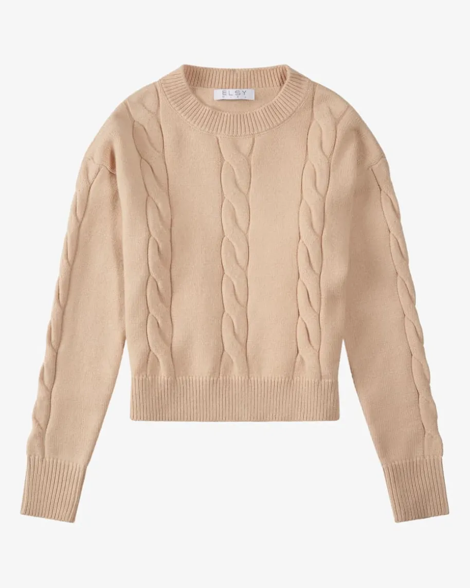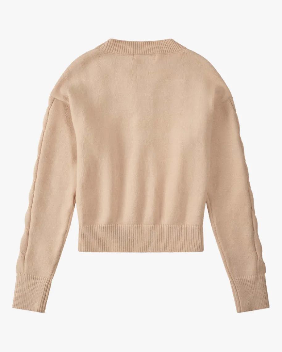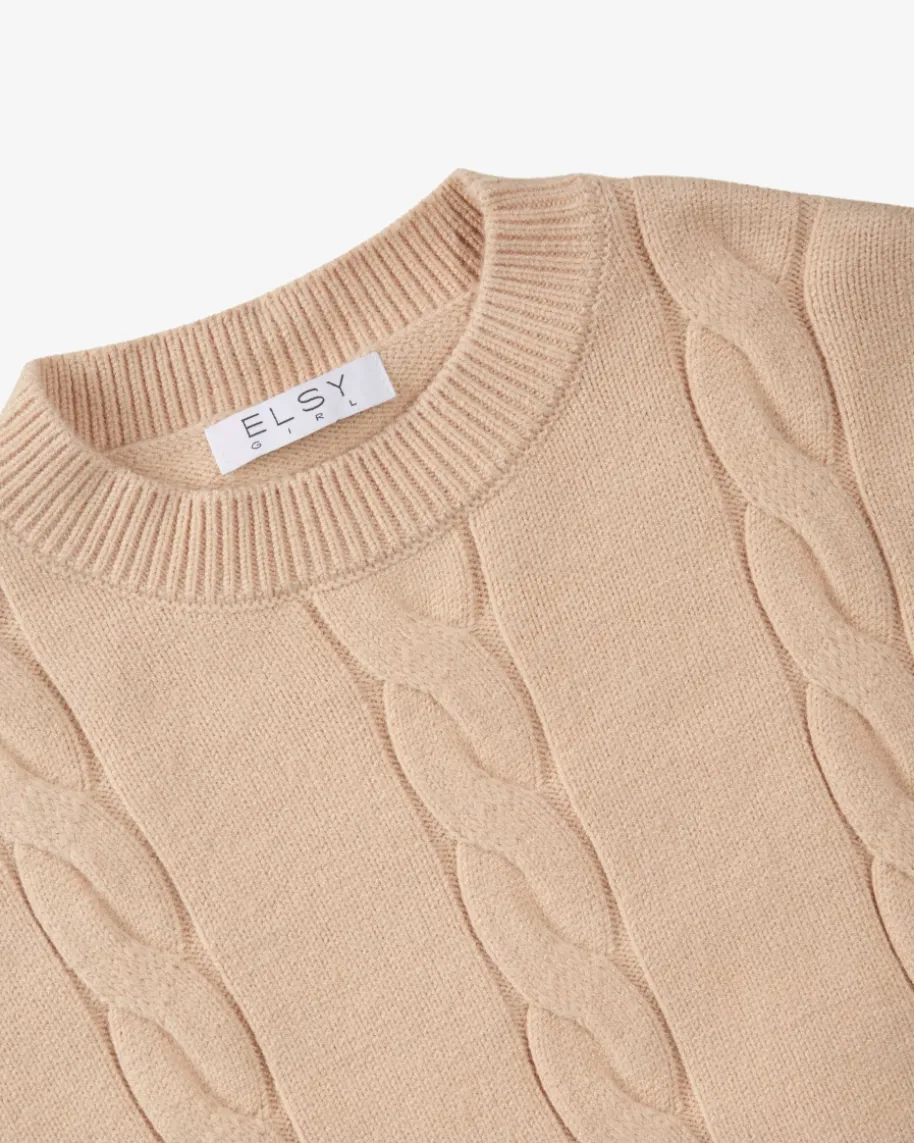 Pullover für Mädchen von Elsy in Beige. Das modische Zopfstrick-Muster schaffteinen niedlichen Favoriten in schmaler Passform, während die elastischeMaterial-Qualität eine besonders angenehme Haptik verspricht. – Ein perfekterBegleiter für die Übergangszeit.