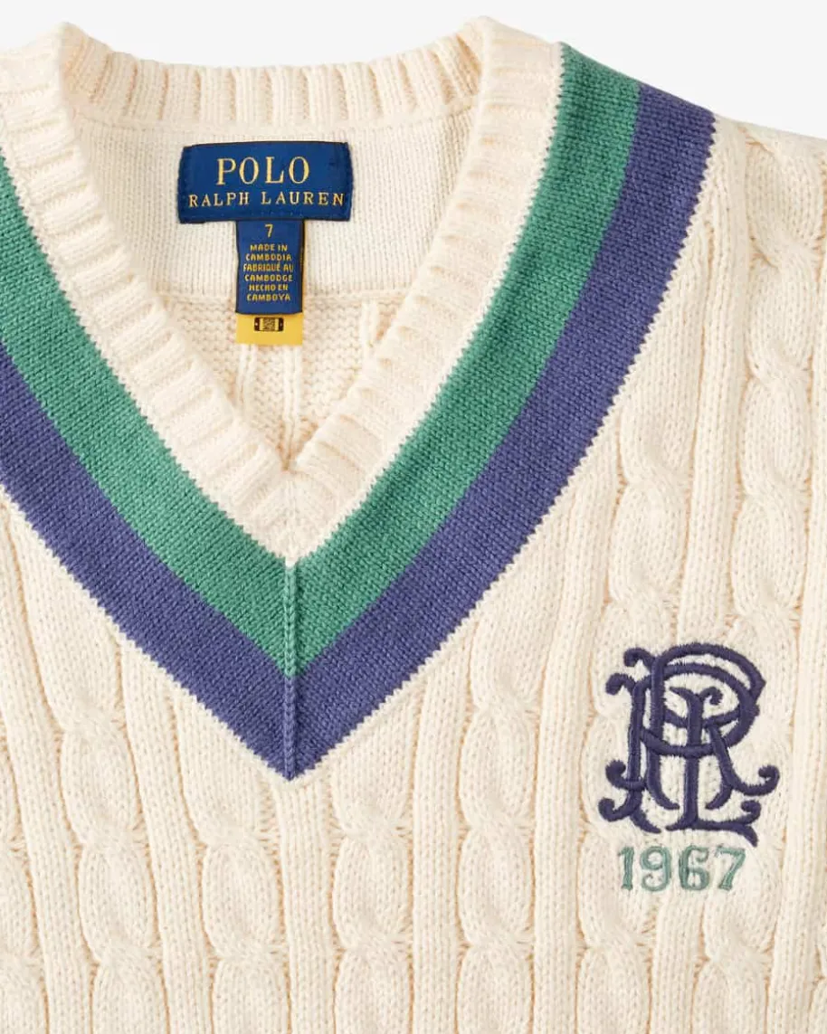 Pullover für Jungen von Polo Ralph Lauren in Creme, Grün und Blau. Das Modellüberzeugt mit klassischem Zopfmuster sowie sportiven Streifen-Details, währenddie Logo-Stickerei den Look gekonnt abrundet. Die weiche Baumwoll-Qualitätgarantiert Ihrem Liebling zudem einen angenehmen Tragekomfort.