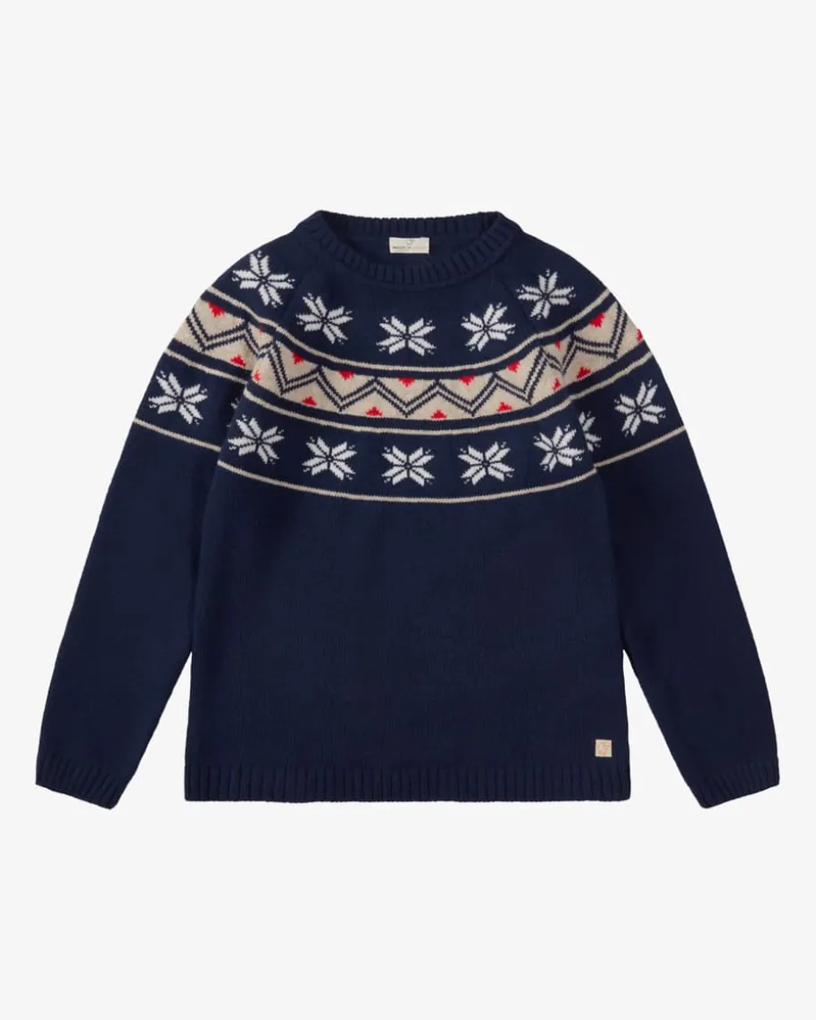 Pullover für Kinder von Maglificio di Verona in Navy. Das Modellüberzeugt dank hochwertiger Schurwoll-Qualität, während das traditionelleNorweger-Strickmuster einen winterlichen Style kreiert.
