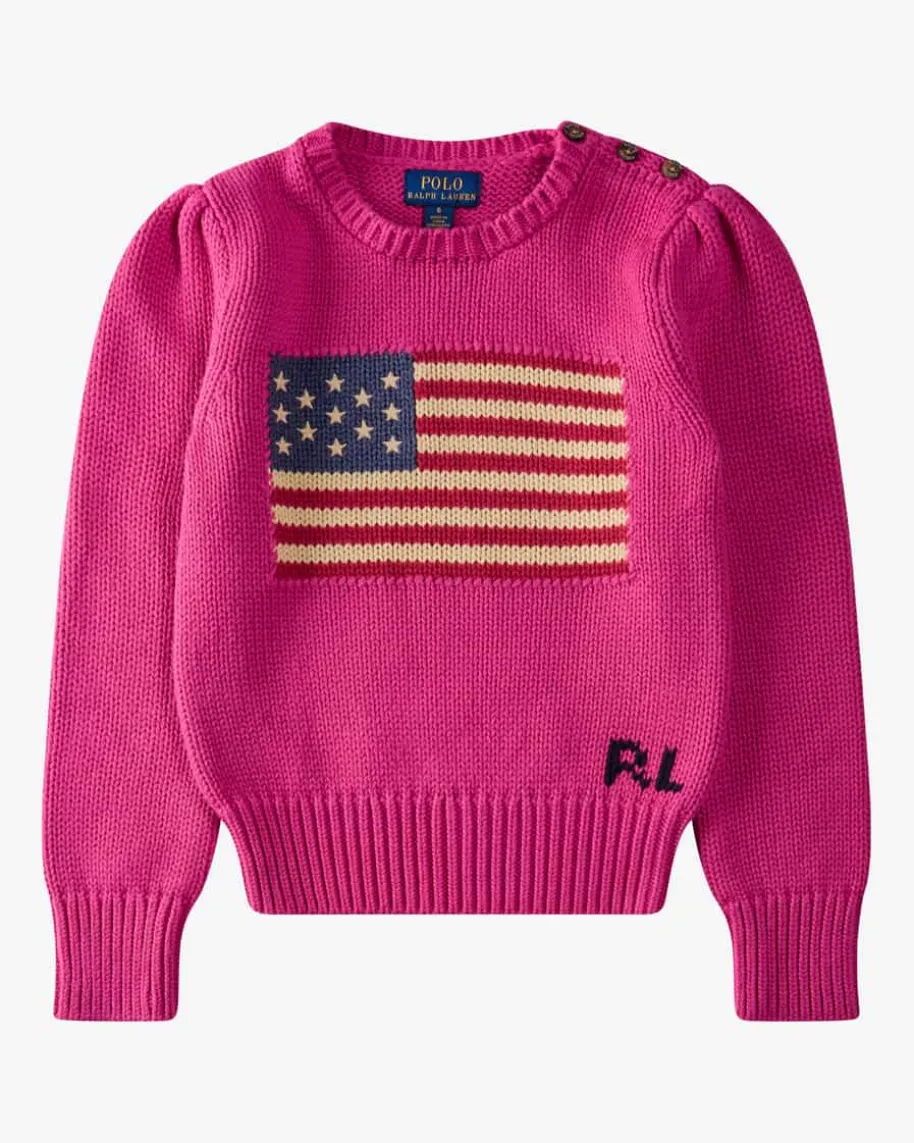 Pullover für Mädchen von Polo Ralph Lauren in Pink. Während das klassischeStrick-Design einen zeitlosen Look kreiert, setzt die Flaggen-Intarsie modischeAkzente und verkörpert zugleich den amerikanischen Spirit des Labels gekonnt.