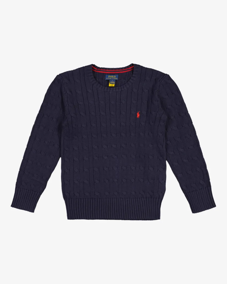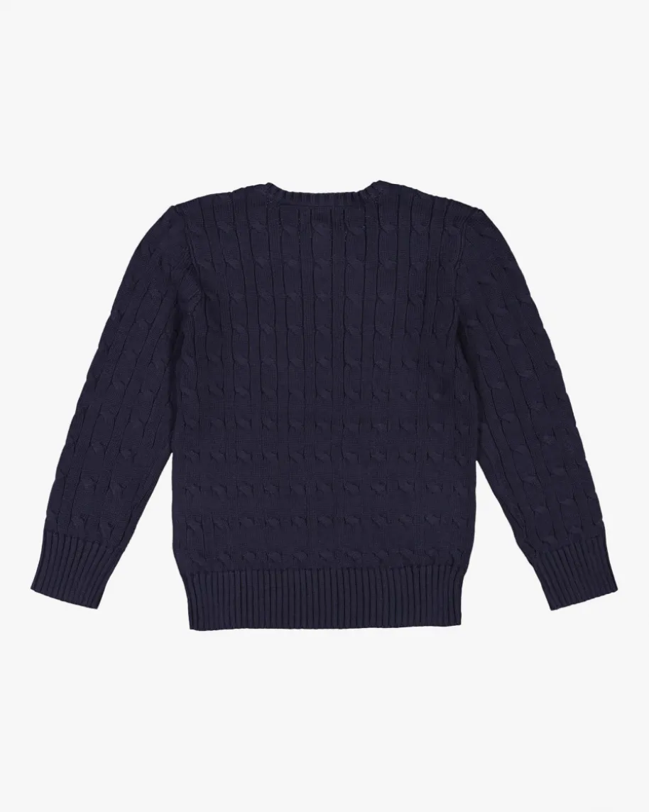 Pullover für Jungen von Polo Ralph Lauren in Blau. Das Modell überzeugtdankdem stilvollen Zopf-Muster als zeitloser Klassiker, während die kontrastierendeLogo-Stickerei auf Brusthöhe das Design stilvoll abrundet.