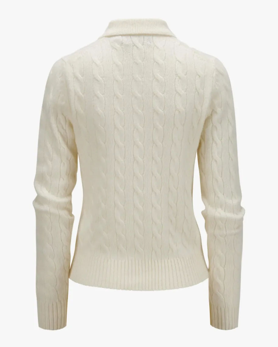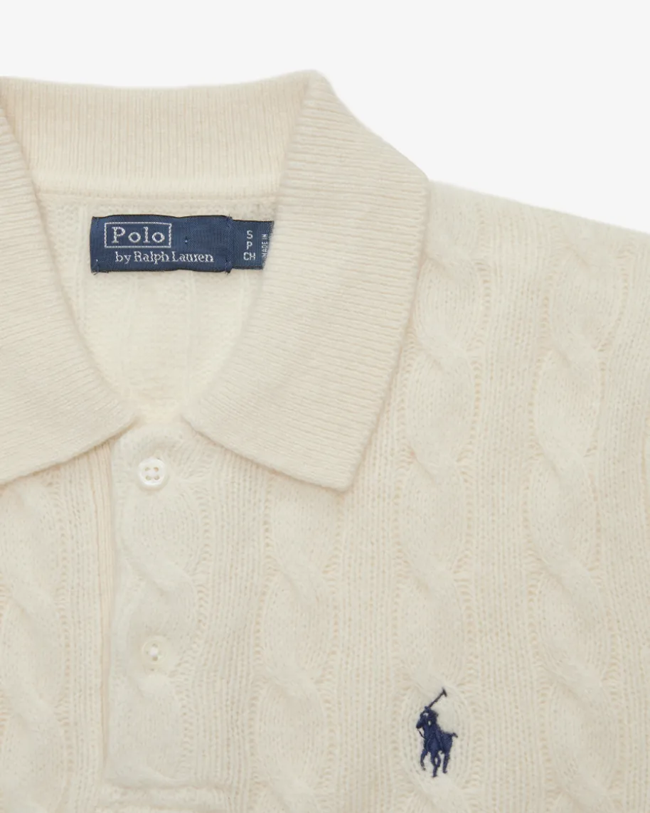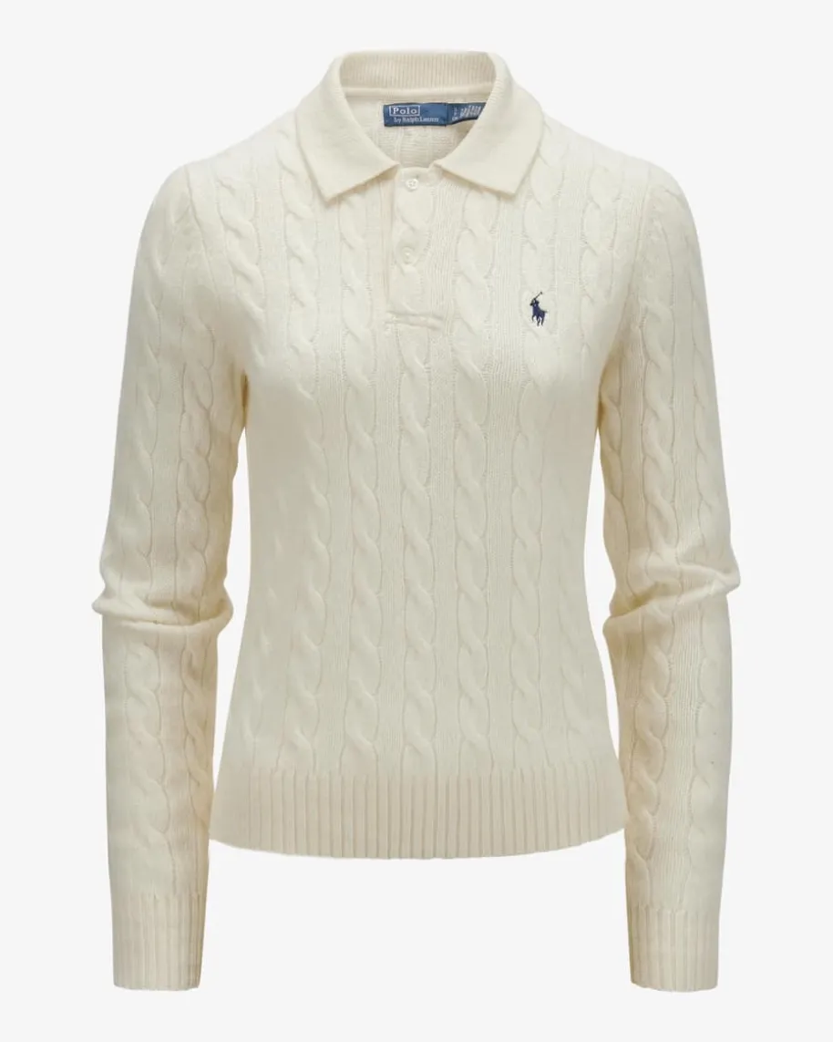 Pullover für Damen von Polo Ralph Lauren in Ecru. Qualität, Lifestyle,Authentizität und zeitlose Eleganz – all das zeichnet die Marke Polo RalphLauren seit nunmehr 50 Jahren Firmengeschichte aus. Das schmale Modellpräsentiert sich dank dem angenehmen Woll-Cashmere-Mix als zeitloser Favorit,während das moderne Zopfstrick-Dessin zusammen mit dem Polokragen den Looksportiv vollenden.