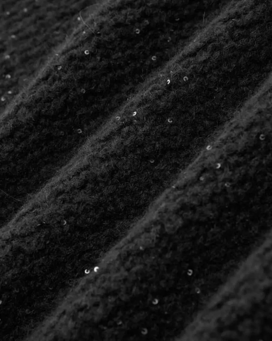 Pullover für Damen von Fabiana Filippi in Schwarz. Während die weite Passformmit überschnittenen Schultern einen legeren Charakter verleiht, setzen diezarten Pailletten-Applikationen feminine Akzente. Zugleich schafft derhochwertige Merinowoll-Seiden-Mix mit Cashmere-Anteil eine angenehme Haptik.