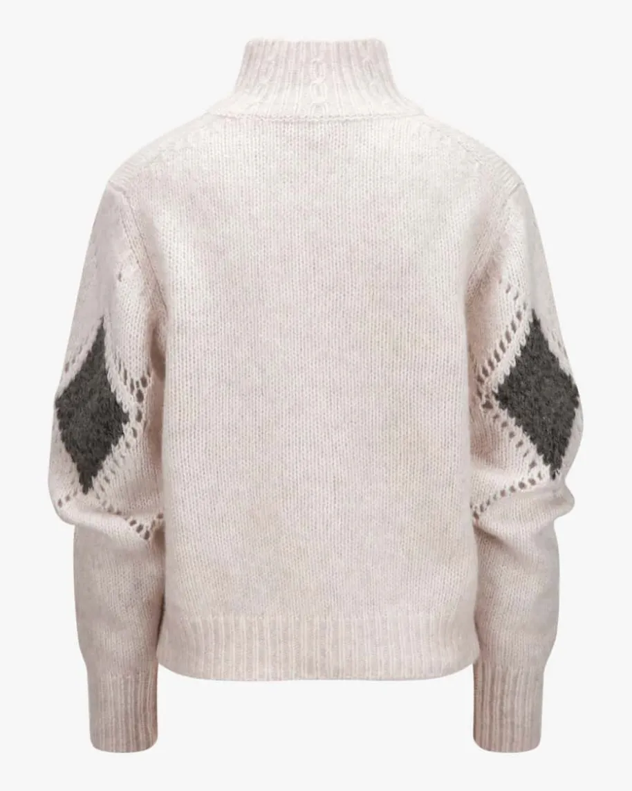 Pullover für Damen von Hemisphere in Ecru und Grau. Die deutsche Marke steht fürluxuriöse Strick- und Kaschmirteile mit Fokus auf Qualität, Weichheit undzeitlose Farben. Auch dieses Modell aus hochwertigem Cashmere-Mix überzeugt mitangenehm-weicher Haptik, während das Rauten-Strick-Design und die Glitzerfaserneinen zeitlos-modernen Begleiter für die kalte Jahreszeit schaffen.