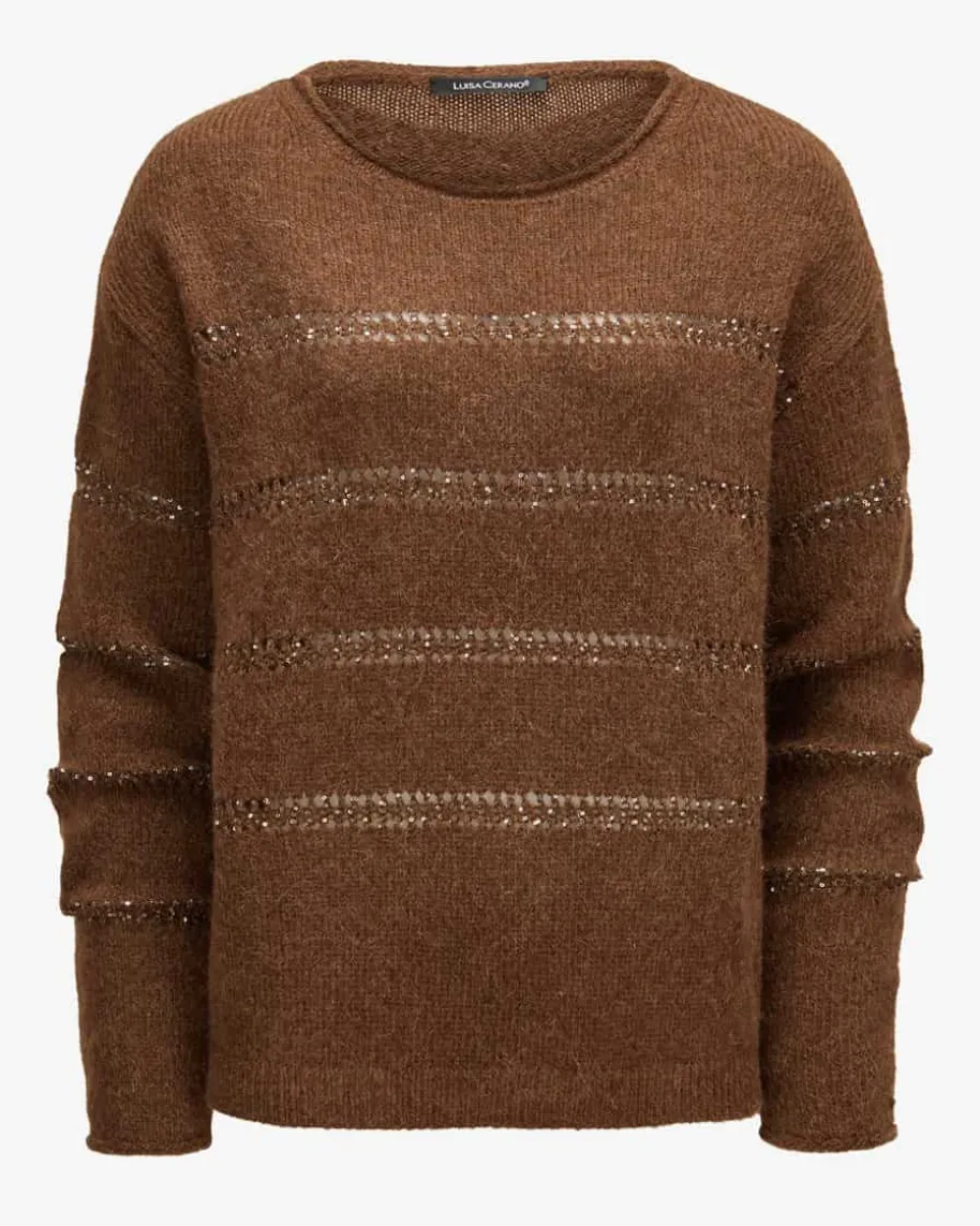Pullover für Damen von Luisa Cerano in Kastanie. Das legere Modell punktet alsfemininer Begleiter dank der dezenten, eingestrickten Pailletten-Details,während der weiche Woll-Mix angenehme Tragemomente verspricht.