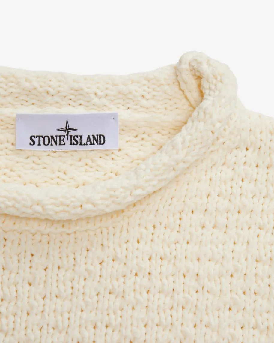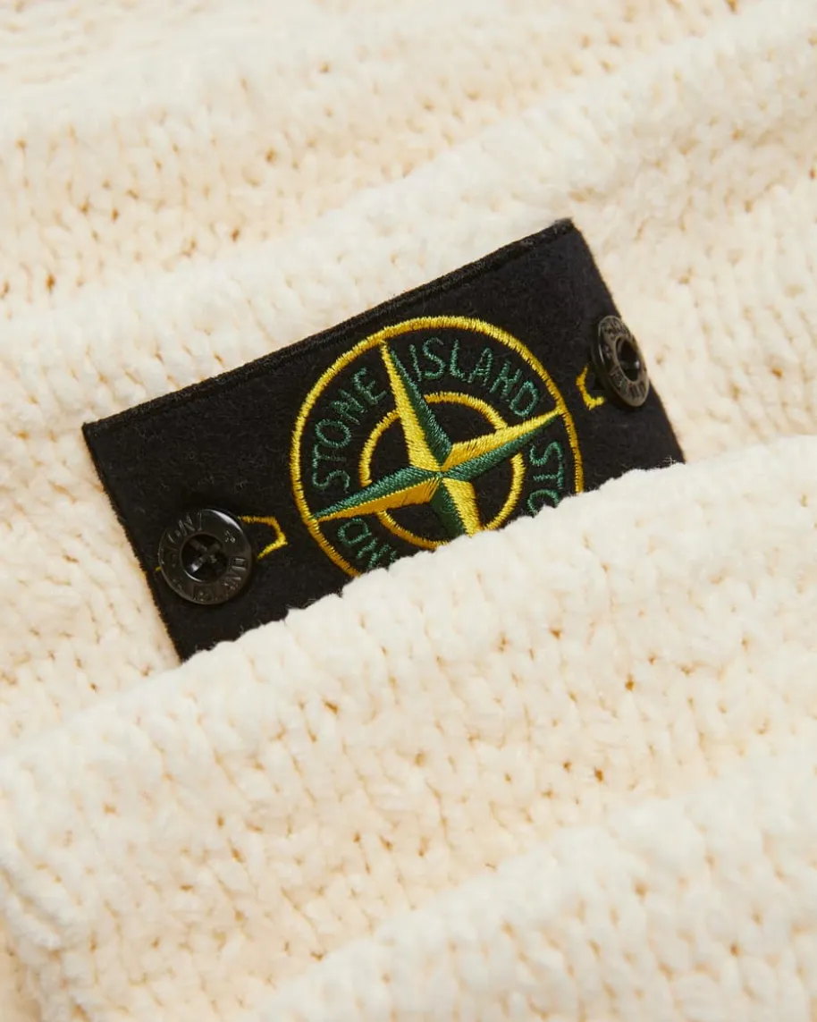 Pullover für Herren von Stone Island in Creme. Das legere Modell überzeugt dankder schweren Baumwollstrick-Qualität in samtiger Chenille-Aufmachung als weicherund moderner Alltagsbegleiter, welcher durch den Rollsaum am Kragen einenbesonderen Touch erhält. Das charakteristische Kompass-Badge rundet den Looklabeltypisch ab.