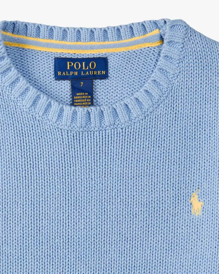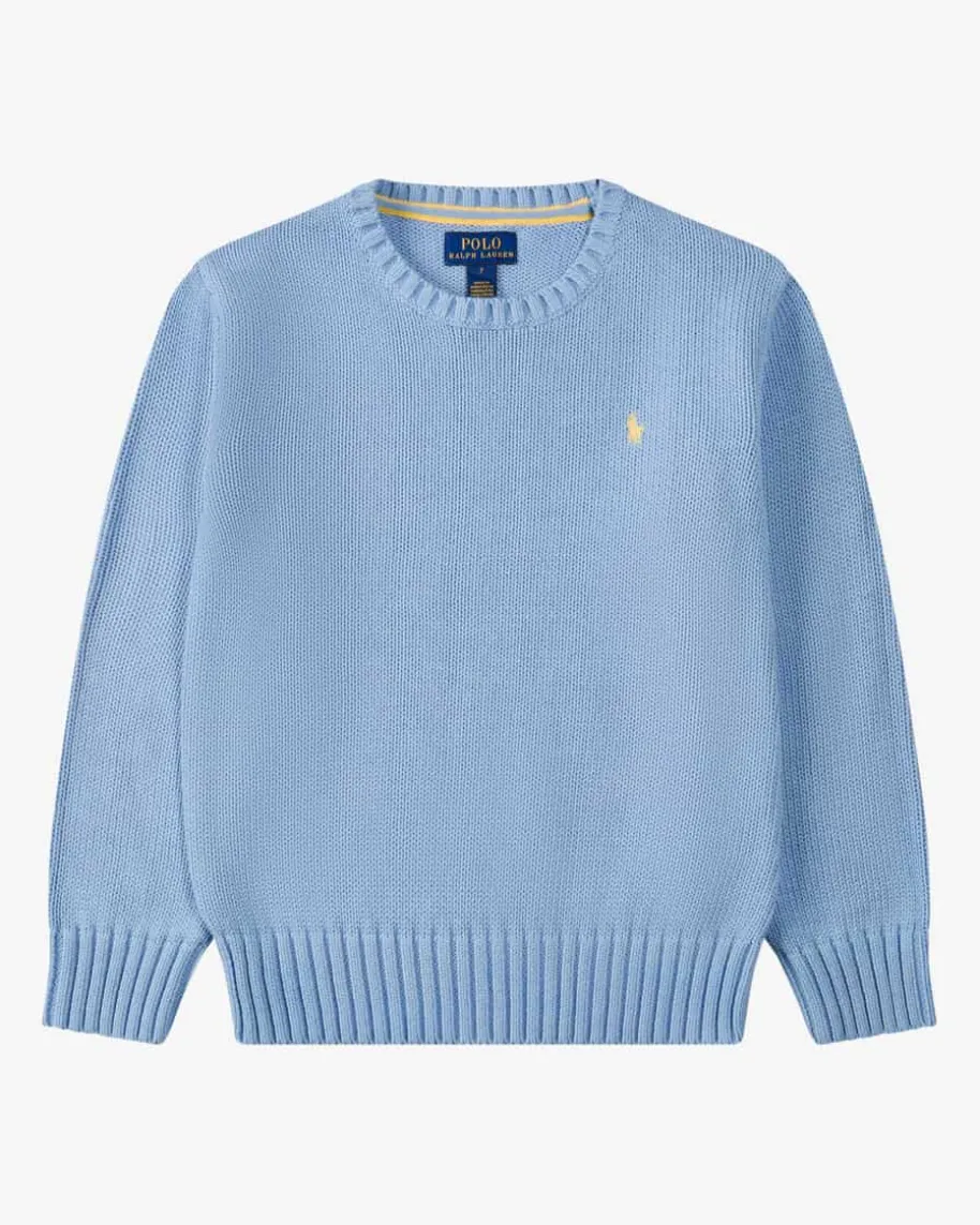 Pullover für Jungen von Polo Ralph Lauren in Hellblau. Während die Baumwoll-Strickqualität sowohl haptisch als auch optisch überzeugt, kreiert dasklassische Design mit markanten Rippstrick-Bündchen in Kombination mit derkontrastierenden Logo-Stickerei einen modernen Casual-Look.