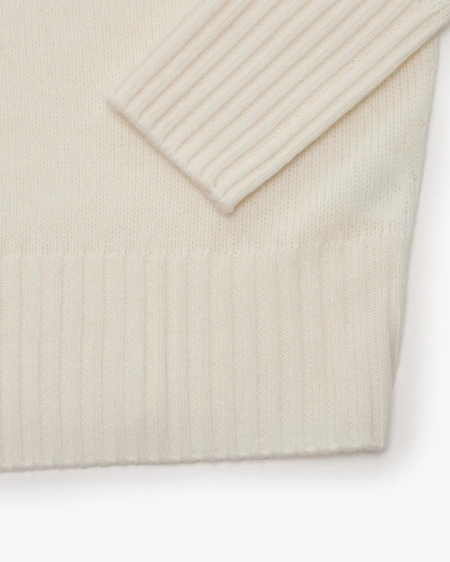 Pullover für Damen von handmade in Ecru. Das Modell in legerer Passform punktetdank der verlängerten Rippstrick-Bündchen im sportiven Design, während die Woll-Cashmere-Verarbeitung einen hohen Tragekomfort verspricht.