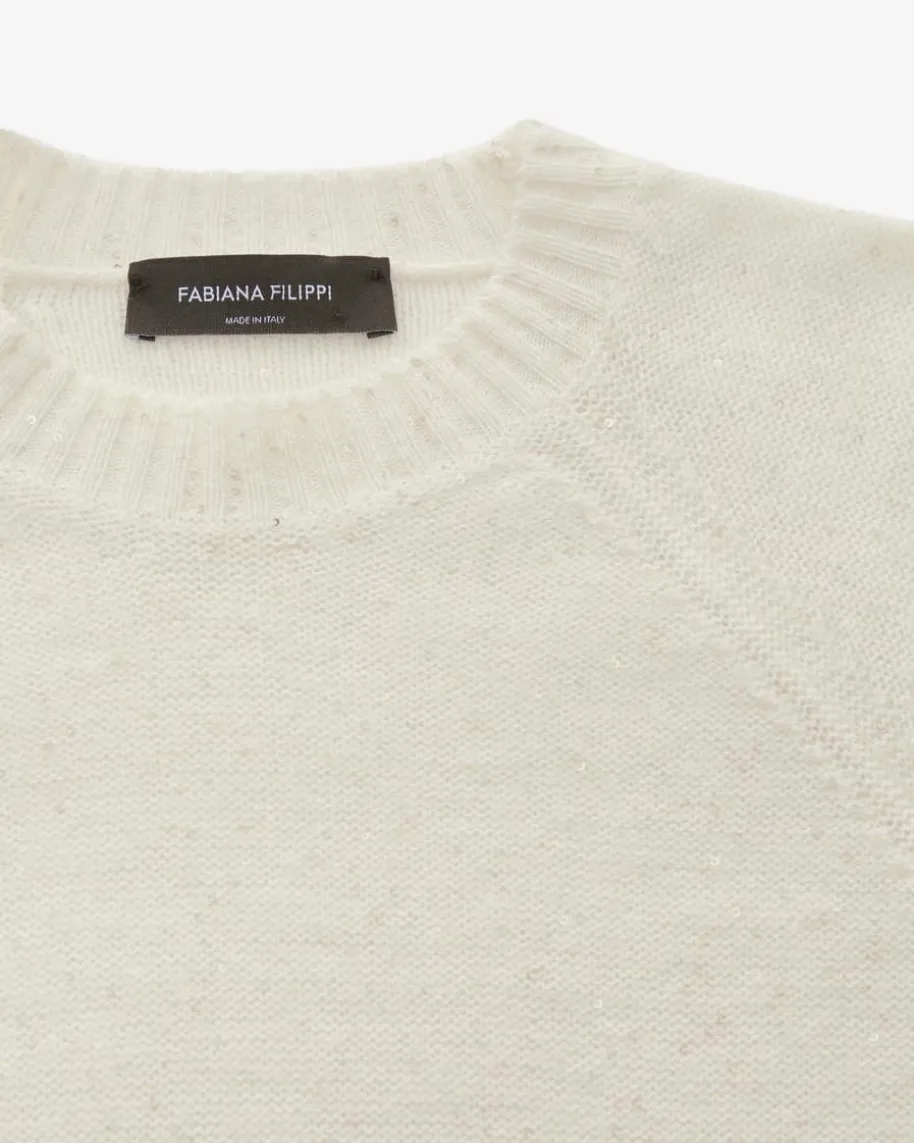 Pullover für Damen von Fabiana Filippi in Creme. Das Modell mit modernem Schnittüberzeugt mit hochwertiger Woll-Mix-Qualität, während die glitzernden Paillettenfür optisches Highlight sorgen, runden klassische Details das Gesamtbildharmonisch ab.