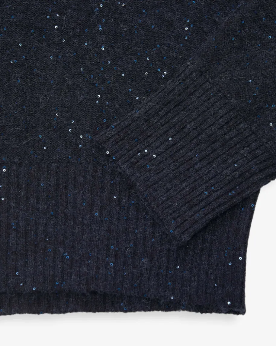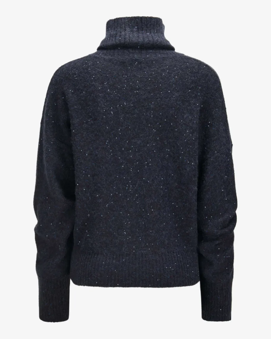 Pullover für Damen von Fabiana Filippi in Navy. Die italienische Marke steht fürmoderne Eleganz, hochwertige Materialien und dezente Farbwelten. Das weitgeschnittene Modell aus hochwertigem Merinowoll-Seiden-Cashmere-Mix präsentiertsich in feinem Linksstrick-Design, welches durch die zarten Pailletten-Applikationen stilvoll abgerundet wird, während die Rippstrick-Details einesportive Note verleihen.