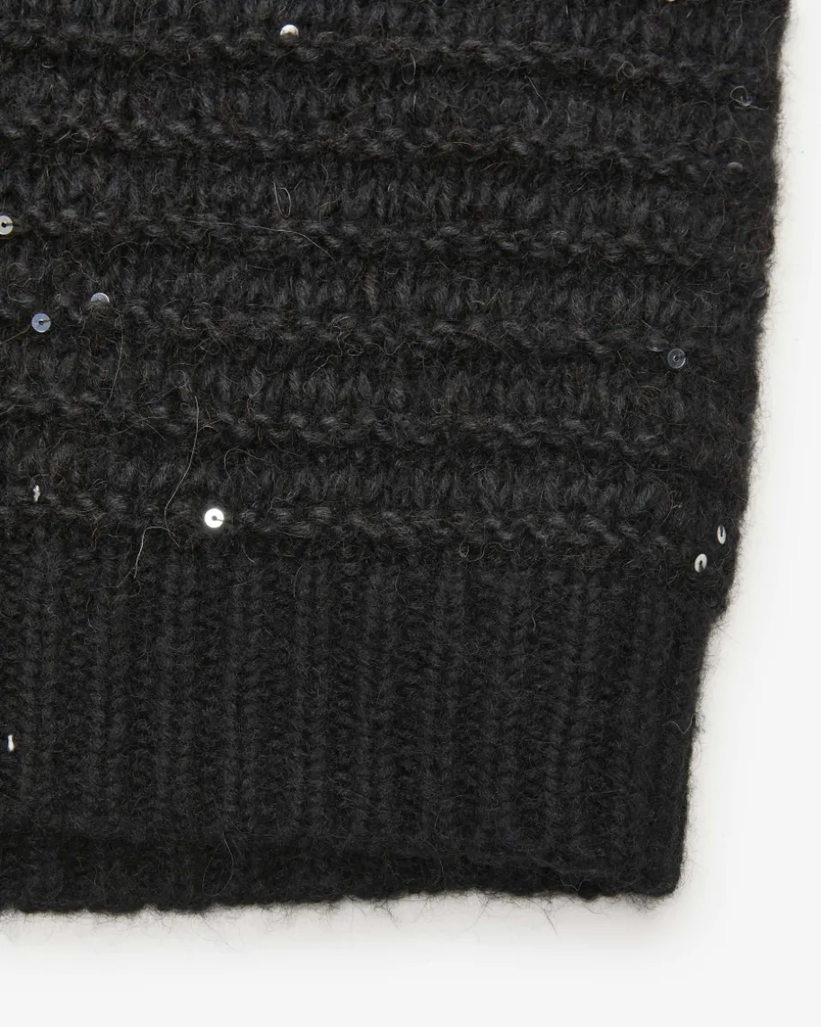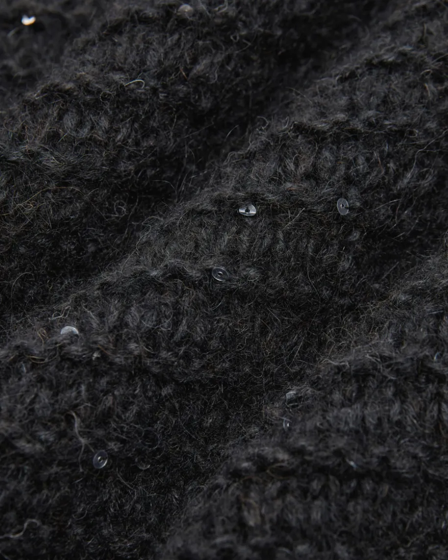 Pullunder für Damen von Peserico in Schwarz. Das kastige Modellaus hochwertigem Alpakawoll-Mix in weichem Grobstrick punktet dank der Melange-Optik mit changierenden Pailletten-Applikationen als modernes Highlight, währendder sonst legere Style einen idealen Layering-Favoriten für Ihre Herbst-/Winter-Garderobe kreiert.