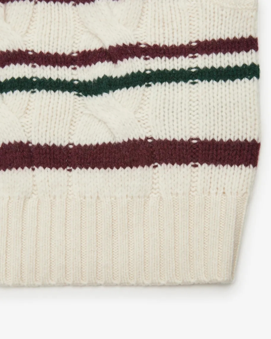 Pullunder für Damen von Polo Ralph Lauren in Creme, Dunkelrot und Dunkelgrün.Während der hochwertige Woll-Cashmere-Mix in schwerer Haptik einen komfortablenLook kreiert, verleiht das klassische Zopfstrick-Design zusammen mit demStreifenmuster einen modernen Touch. Kombiniert als Layering-Piece entsteht einstilvoller Herbst-Begleiter.