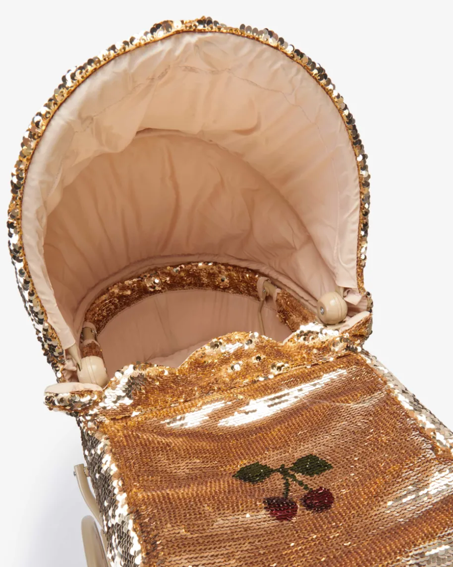 Puppenwagen für Kinder von Konges Slojd in Gold und Beige. Mit diesemglitzernden Modell präsentiert das Label einen zuckersüßen Puppenwagen für IhreKleine. Dank des Retro-Designs in Pailletten-Aufmachung avanciert das Gesamtbildzum extravaganten Blickfang.