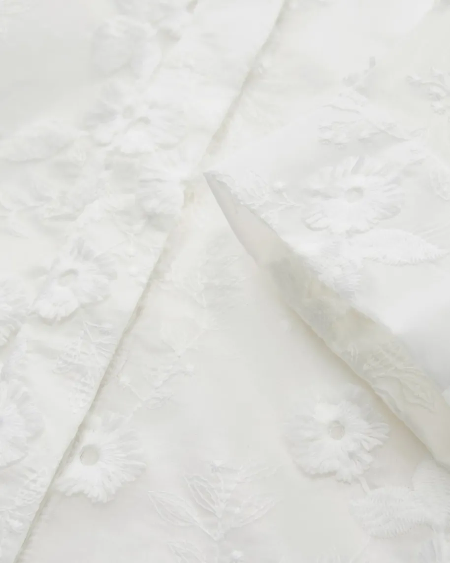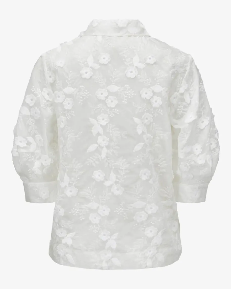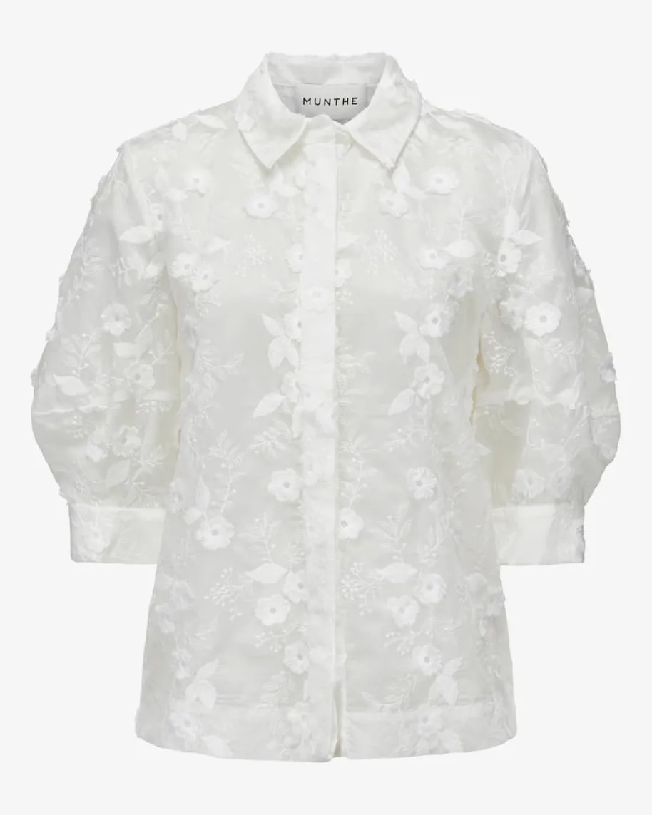 Pust Blusenshirt für Damen von Munthe in Weiß. Das transparente Modell überzeugtin klassischer Schnittform, während die florale 3-D Spitze das Gesamtbildharmonisch vollendet und einen modernen Begleiter für schicke Styles kreiert.