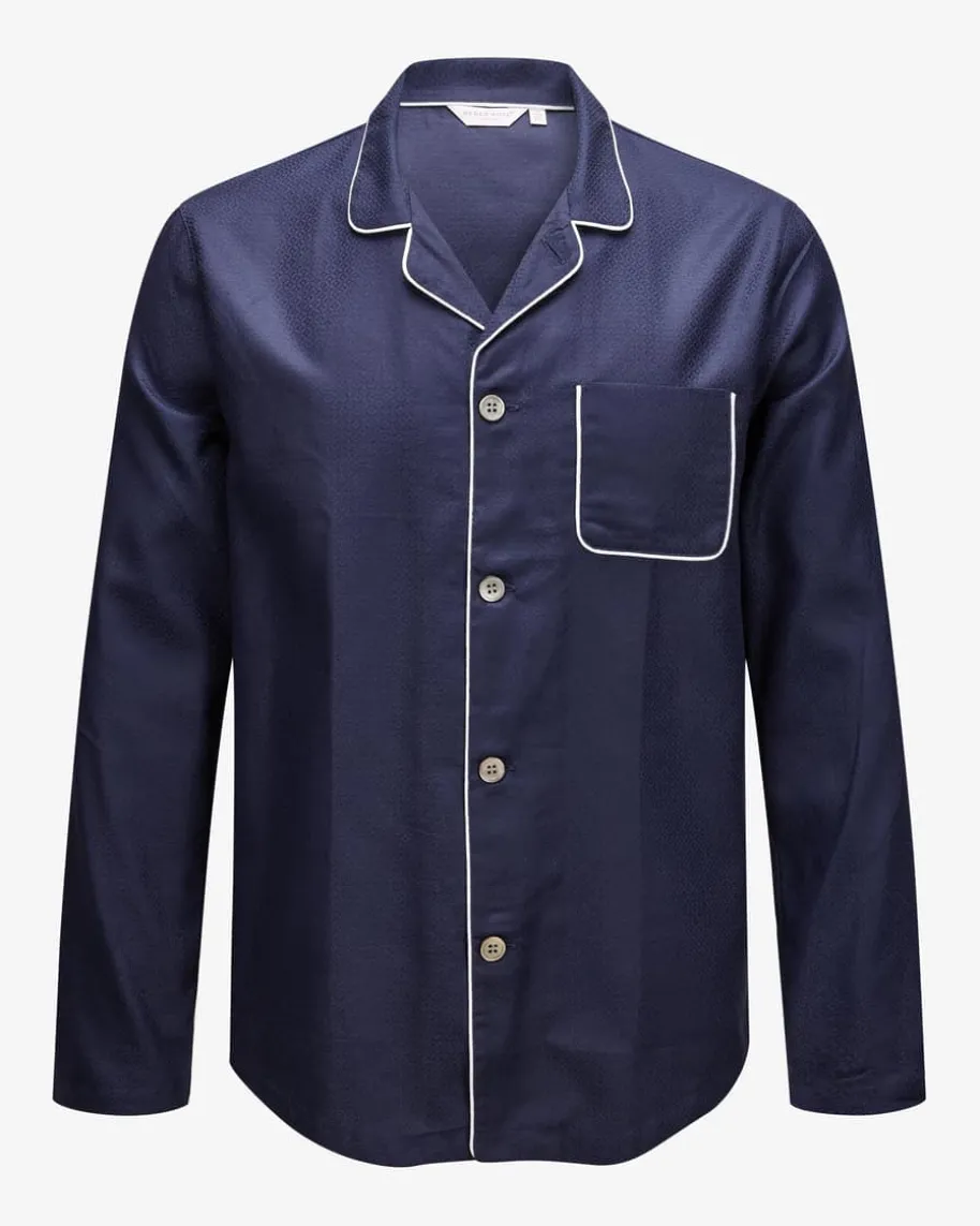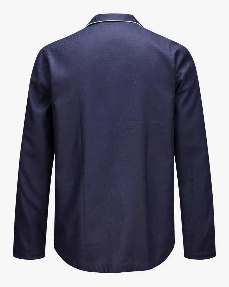 Pyjama für Herren von Derek Rose in Navy und Weiß. DasFamilienunternehmen steht für hochwertige Nachtwäsche und überzeugt mitexklusivem Komfort sowie perfekter Verarbeitung. Das Loungewear-Set versprichtdank der Baumwoll-Qualität sowie der legeren Passform erstklassigeWohlfühlmomente, während die modische Hemd-Optik mit feinen Jacquard-Dessin denletzten Schliff verleiht.