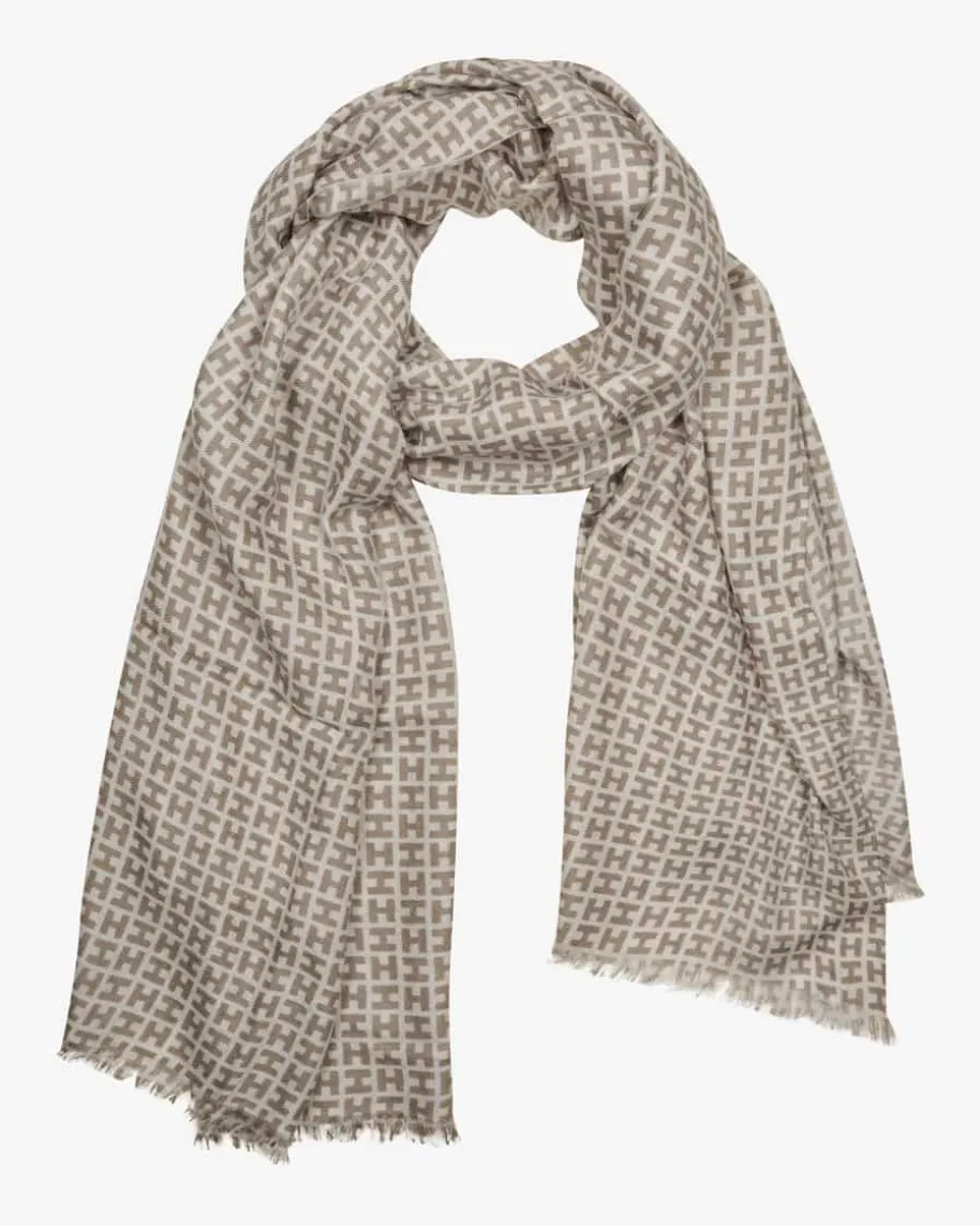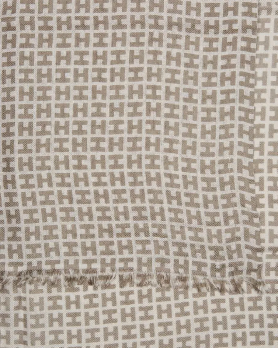 Radegunde Schal für Damen von Hemisphere in Stein und Hellgrau. Dascharakteristische Logo-Dessin sorgt für besondere Akzente, während derhochwertige Cashmere-Seiden-Mix einen weichen Griff aufweist.