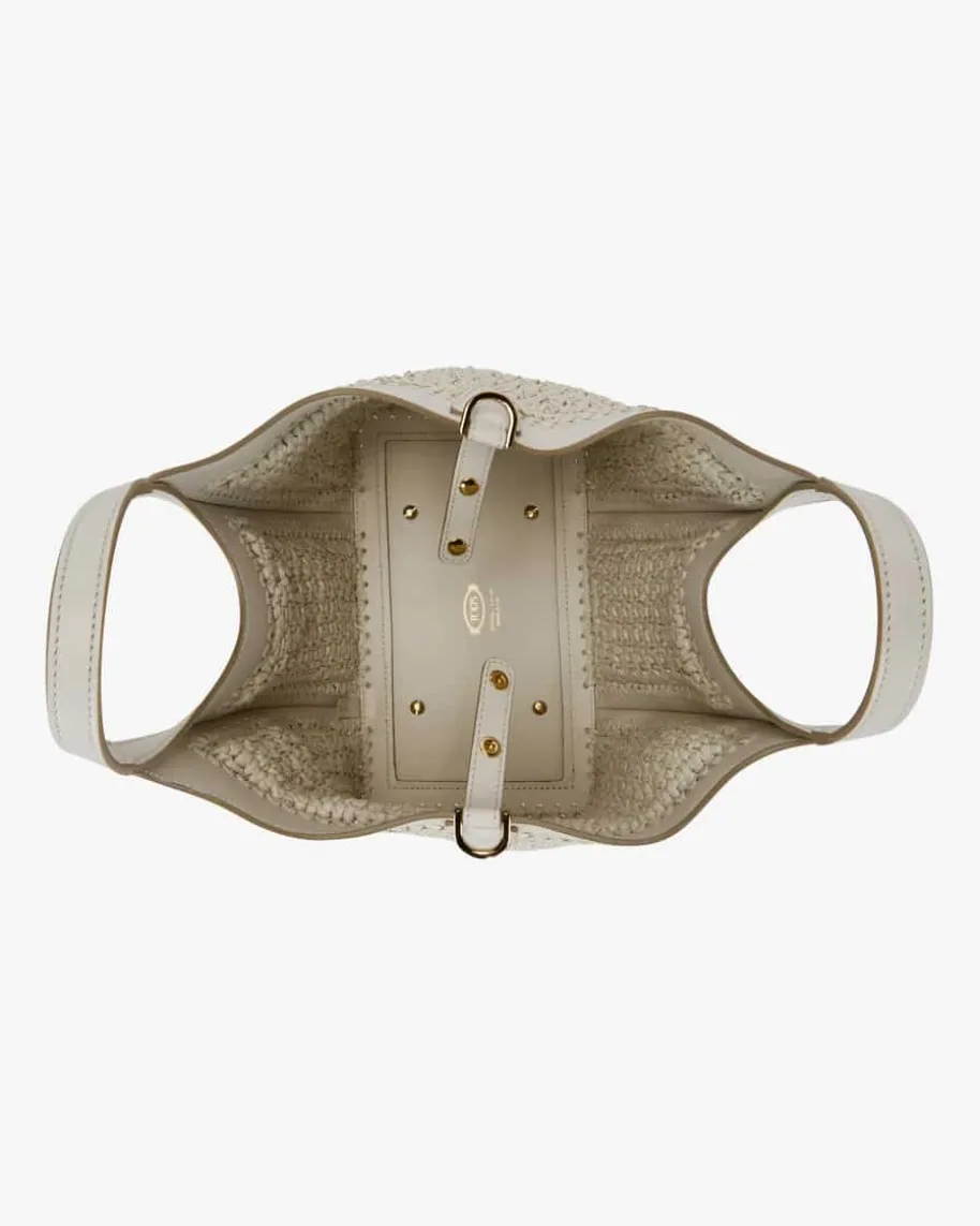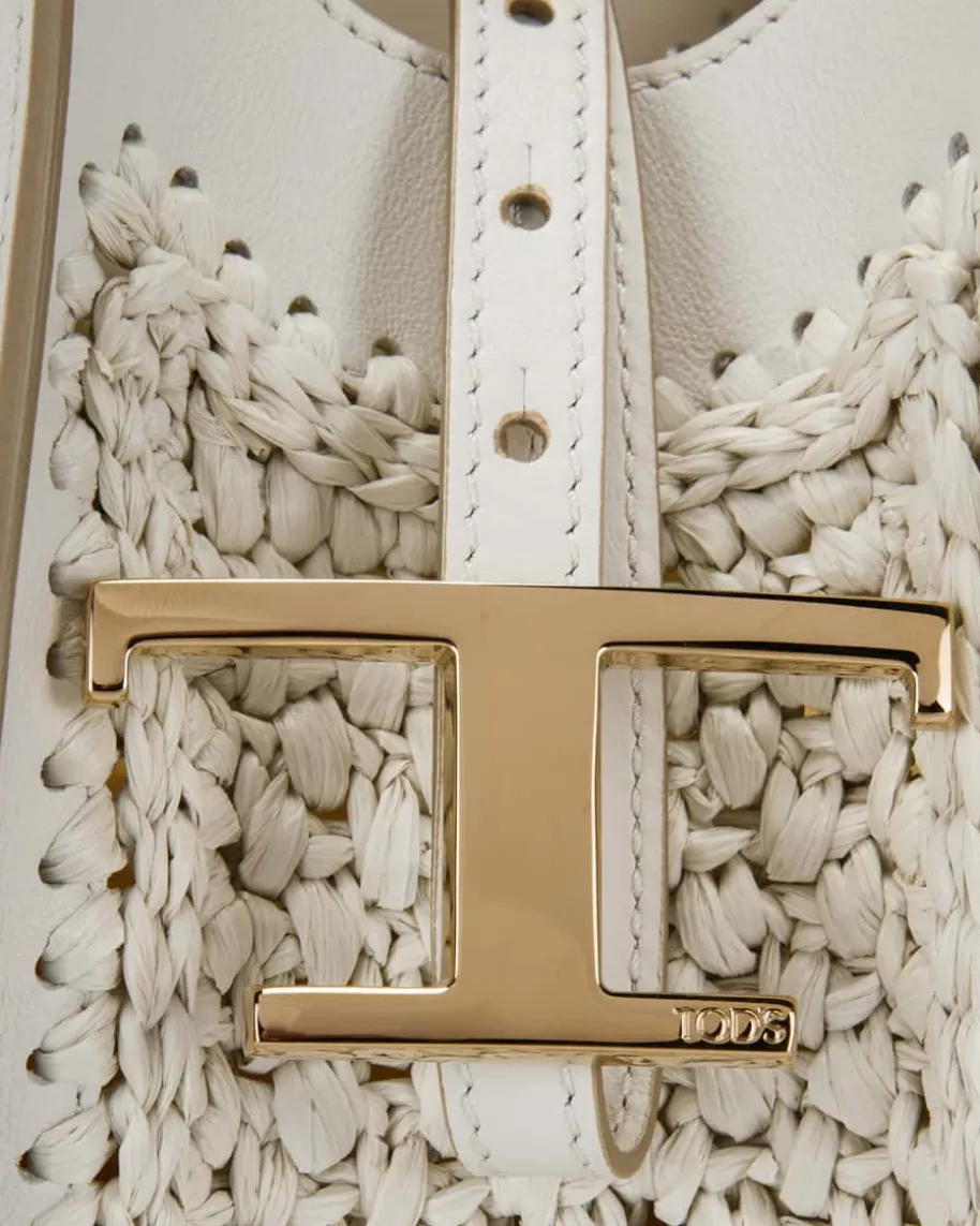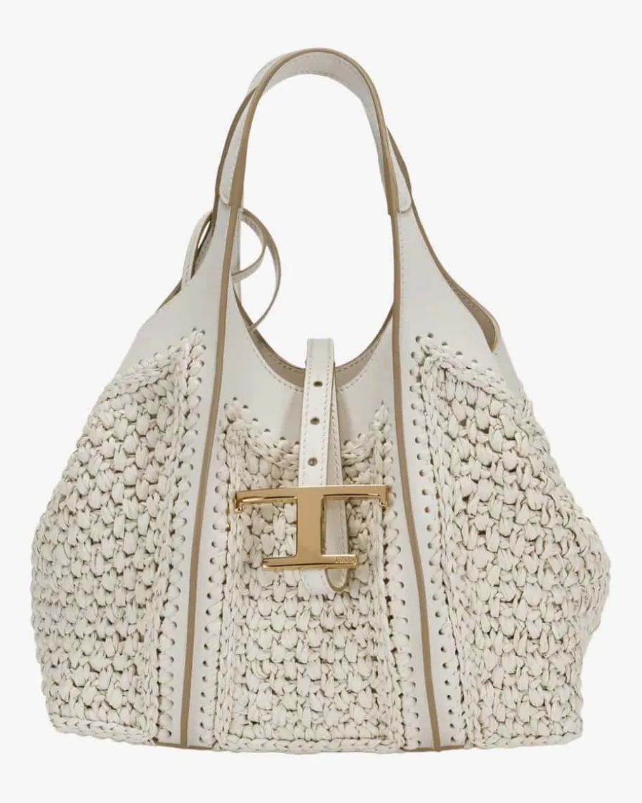 Raffiatasche für Damen von Tod’s in Creme. Das Modell mit der Kombination ausgeflochtenem Raffia und Leder besticht zusammen mit dem labeltypischen Logo-Anhänger in modischer Eleganz, während das geräumige Hauptfach sowie dasherausnehmbare Necessaire genug Stauraum für all Ihre Alltags-Essentials bietet.