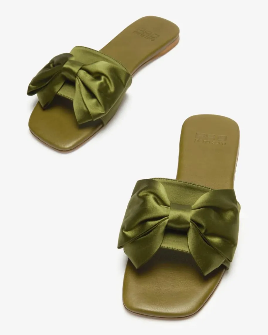 Raso Pantoletten für Damen von Pao in Oliv. Bekannt für extravagantesitalienisches Handwerk und Design, kreiert das Label trendsichere Looks inhochwertiger Qualität. Auch dieses changierende Modell präsentiert sich mitgroßer Schleifen-Applikation und edel changierender Satin-Optik.
