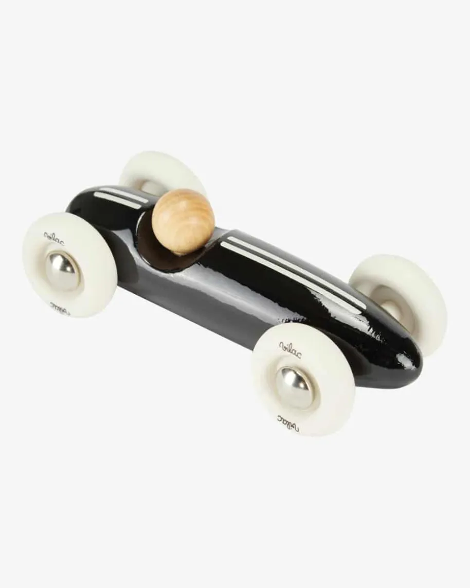 Rennwagen für Kinder von Vilac in Schwarz und Weiß. Das Auto funktioniert sowohlals Spielzeug für Ihre Kleinen, als auch als cooles Deko-Element, wobei dieGummireifen für einen ruhigen Lauf am Boden sorgen und das lackierte Holz einenedlen Look kreiert.