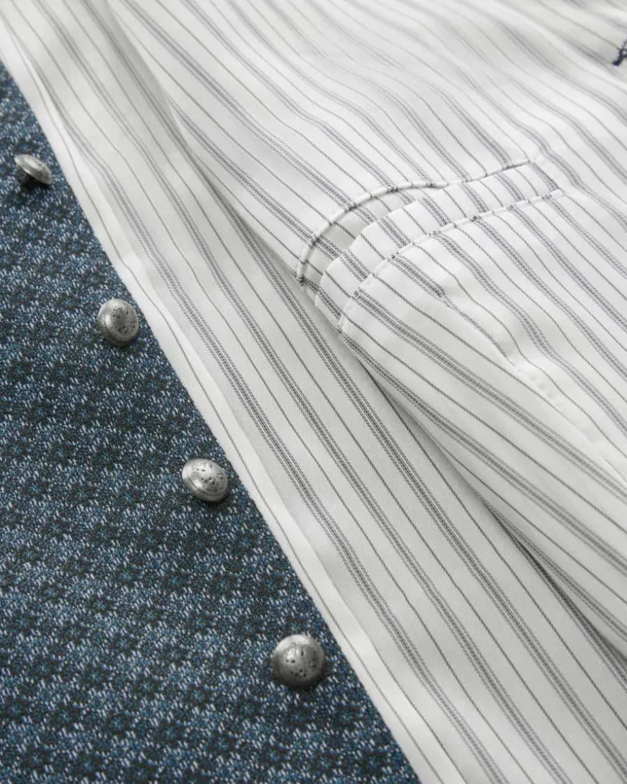 Robert Trachtenweste Slim Fit für Herren von Hammerschmid in Blau, Hellblau undSchwarz. Sportive Trachtenmode mit Stil – Das traditionelle Modell besticht dankder Stretch-Rückseite mit hohem Tragekomfort, während das feine Strukturmustersowie die Metallknöpfe den letzten Schliff verleihen.