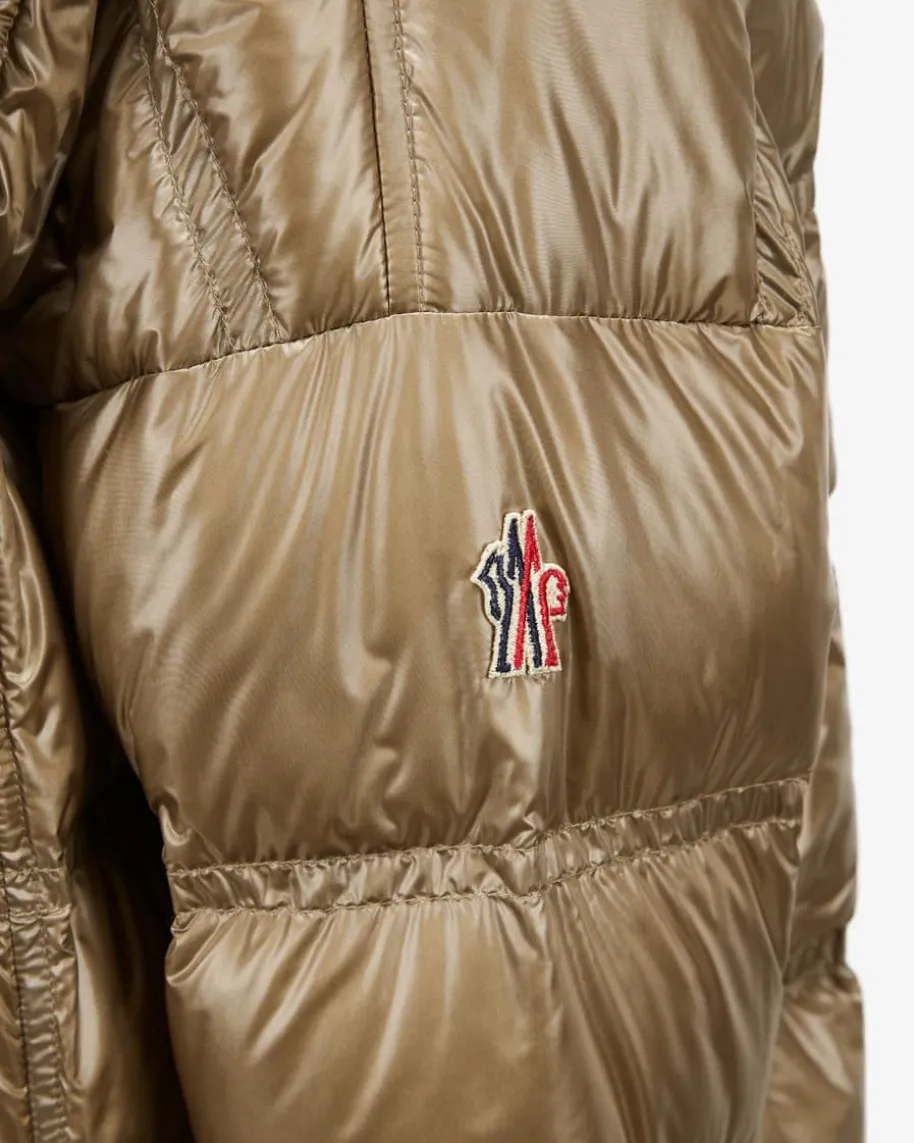 Rochelair Daunenmantel für Damen von Moncler Grenoble in Gold. Das Oversize-Modell überzeugt dank des Lackoptik-Steppmusters und der besonders leichtenDaunen-Feder-Füllung mit erstklassiger Wärmeisolierung. Zusammen mit diversenpraktischen Details punktet der Mantel zudem mit wasserabweisender, winddichtersowie atmungsaktiver Funktion als vielseitiger Begleiter. Zugleich runden Logo-Applikationen das Gesamtbild harmonisch ab.