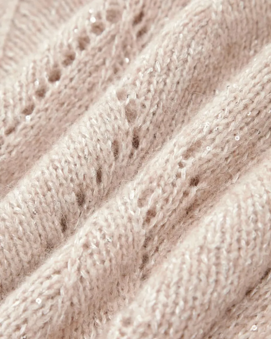 Rollkragenpullover für Damen von Peserico in Beige. Das Modell punktet sowohlmit softer Haptik, als auch dank der silbernen Lurexfäden und Pailletten mitoptischen Highlights. Die weite Passform und das Ajour-Strickmuster im Rauten-Design runden den Look modisch ab.