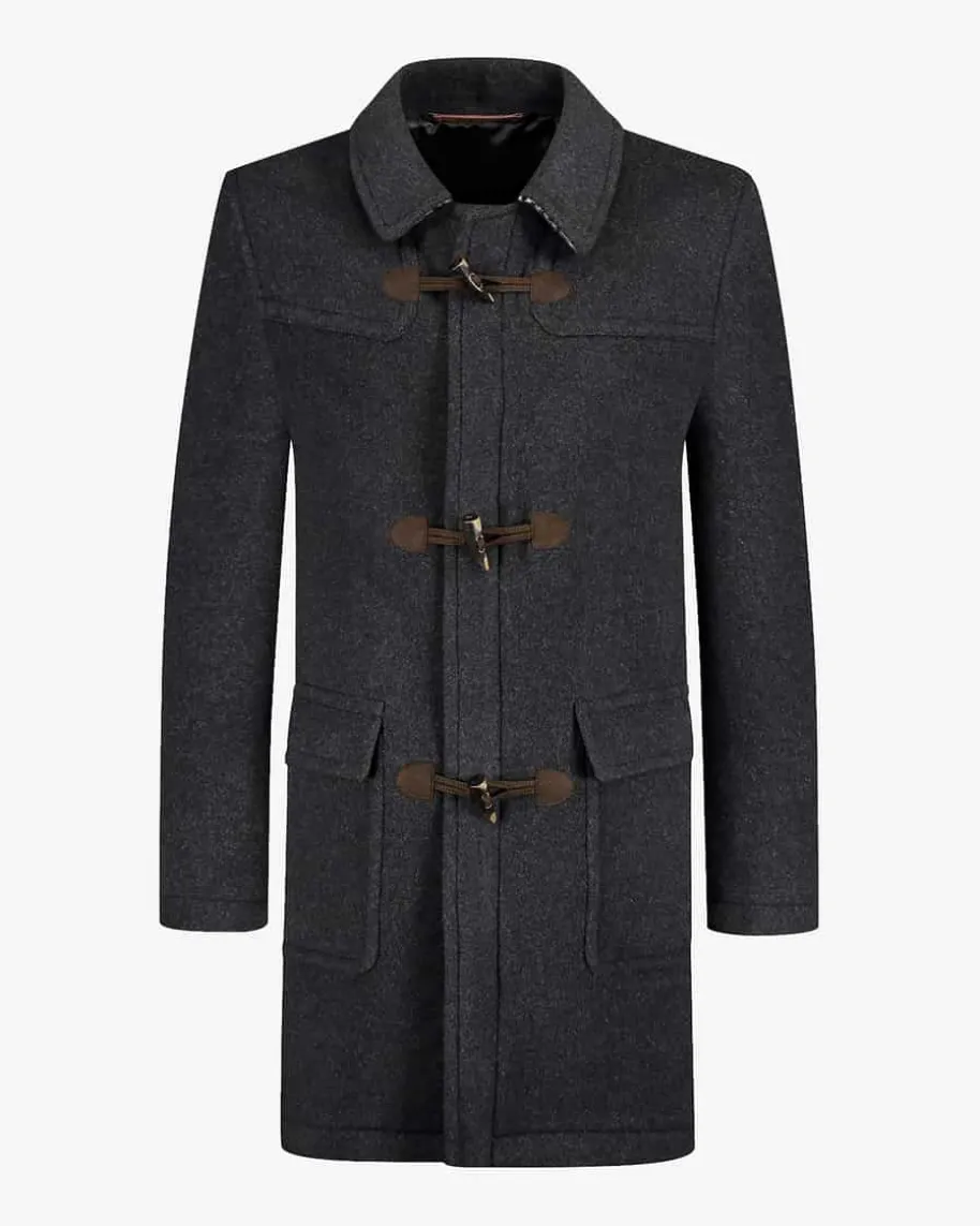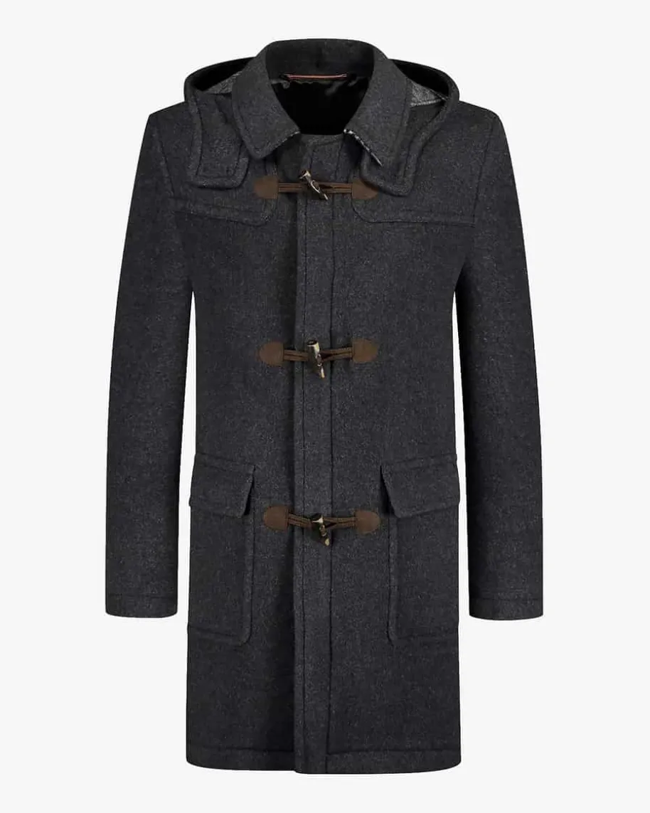 Ron Mantel für Herren von Steinbock in Anthrazit. Das Modell zeichnet sich durchden hochwertigen Material-Mix aus, während der charakteristische Knebel-Verschluss sowie die abnehmbare Kapuze den zeitlosen Dufflecoat-Look gekonntunterstreichen.