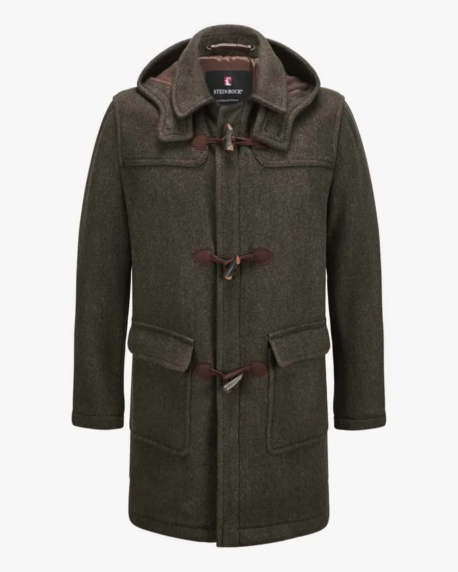 Ron Trachtenmantel für Herren von Steinbock in Dunkeloliv. Die österreichischeTraditionsmarke für Trachtenjacken & Mäntel – robust, klassisch, hochwertig.Auch dieses Modell zeichnet sich durch den hochwertigen Woll-Mix aus, währendder charakteristische Knebel- Verschluss sowie die abnehmbare Kapuze denmaskulinen Look gekonnt unterstreichen.