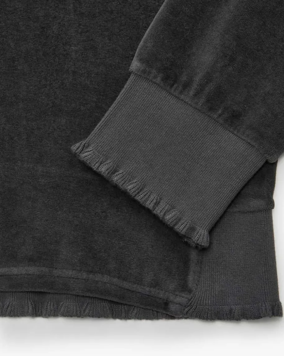 Rose Sweatshirt für Damen von Love Joy Victory in Dunkelgrau. Ein modischesWohlfühl-Piece! Dank der samtigen Stoff-Qualität erhält das Modell einenkuschelig weichen und zugleich modernen Look, während die Rippstrick-Details mitzarten Rüschen optische Highlights setzen. In Kombination mit der passendenSweathose avanciert das Outfit zu einem legeren Favoriten für Zuhause.
