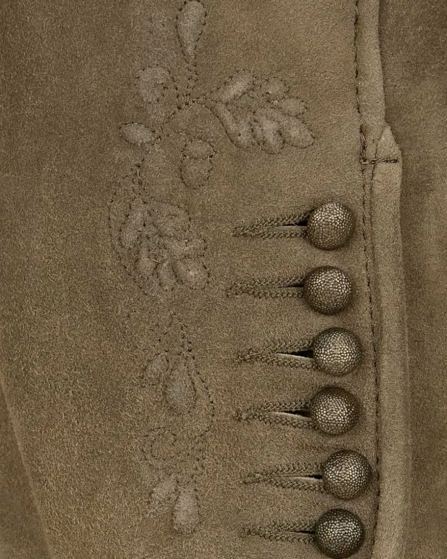 Ruth Trachten-Kniebundhose für Damen von Meindl in Darkgrey. DasTraditionsunternehmen Meindl steht seit Jahrzehnten für traditionelle Handarbeitund höchste Qualität. Auch dieses Modell aus hochwertigem Ziegenleder überzeugtdurch tonale Zierstickereien sowie die geknöpften Beinenden. Ein Favorit fürmodische Trachten-Looks.