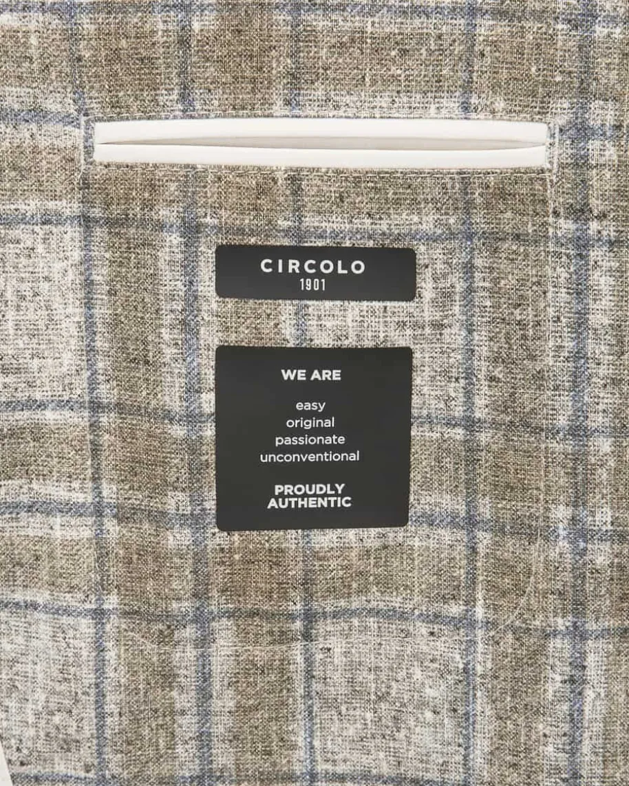 Sakko für Herren von Circolo 1901 in Oliv und Taubenblau. Die elastischeBaumwoll-Qualität besticht mit einer angenehmen Haptik, während das modischeGlencheck-Muster ein stilvolles Gesamtbild kreiert. Zugleich runden klassischeDetails das Modell gekonnt ab.