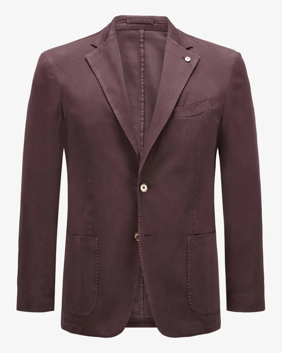 Sakko für Herren von L.B.M.1911 in Pflaume. Das antaillierte Modell überzeugtmit leichter Baumwoll-Seiden-Qualität, welche für einen angenehmen Tragekomfortsorgt. Der weiche Griff verleiht dem Modell einen besonderen Effekt und rundetdas klassische Gesamtbild gekonnt ab.