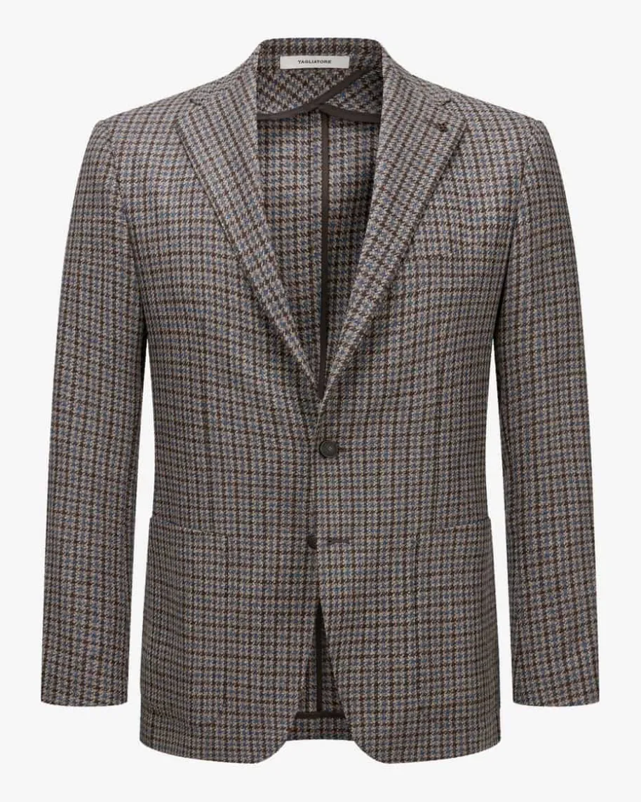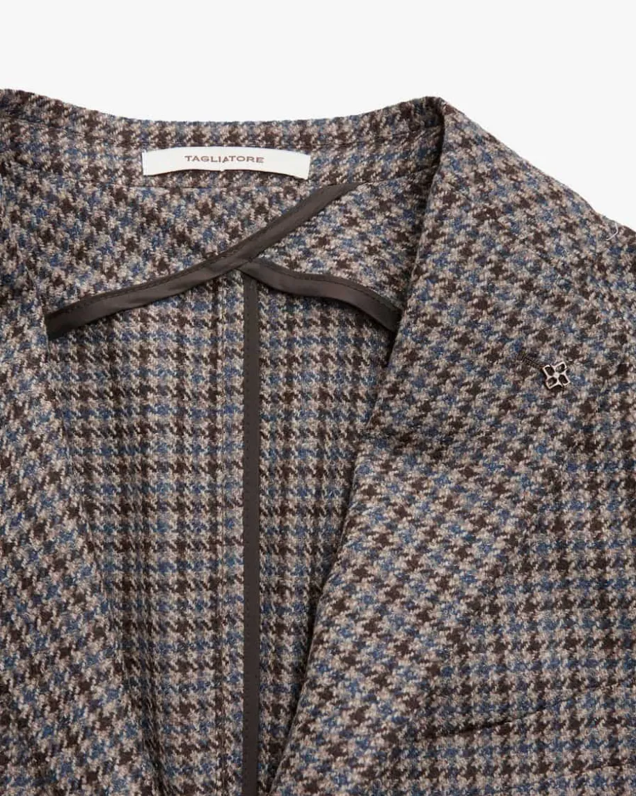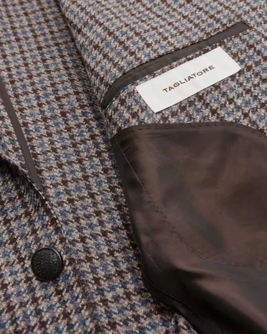 Sakko für Herren von Tagliatore in Dunkelbraun, Blau und Sand. Das Modellüberzeugt mit hochwertiger Schurwoll-Mix-Qualität, die sowohl mit stilvollemHeritage Check-Dessin als auch mit weicher Haptik überzeugt. Die klassischenDetails runden den Look gekonnt ab, während der Pin am Reverskragen modischeAkzente setzt.