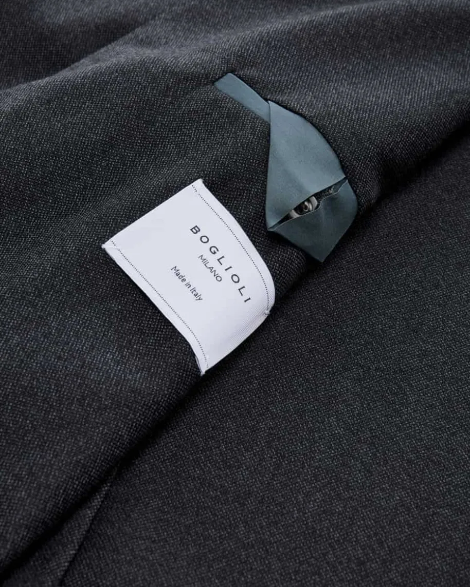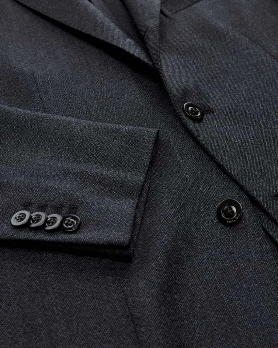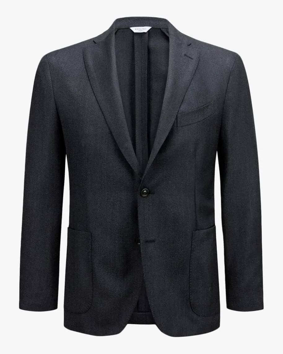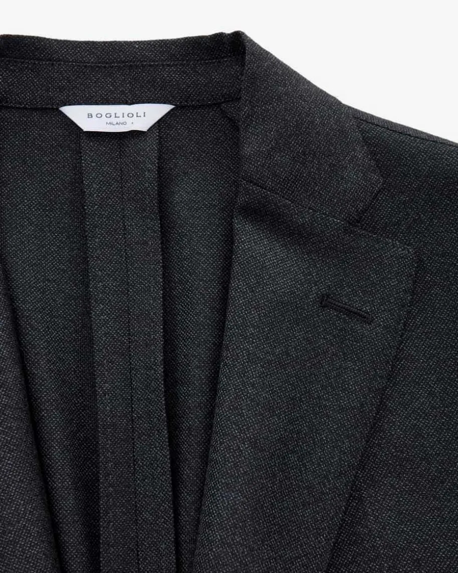 Sakko für Herren von Boglioli in Anthrazit. Das ungefütterte Modell ausangenehm-leichter Hopsack-Wolle begeistert sowohl mit leicht strukturierterHaptik als auch fein gemusterter Optik, während die legendäre K.Jacket-Reihe füreine optimale Passform mit leichtem Tragegefühl und legerem Charakter steht.