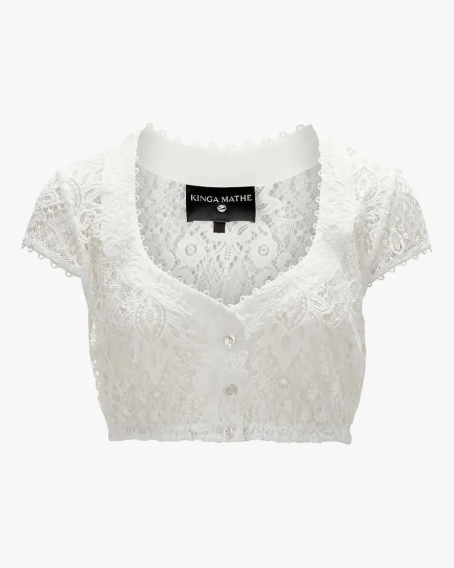 Samantha Dirndlbluse für Damen von Kinga Mathe in Weiß. Dank der feinen Spitzesowie den Zierborten erhält das Modell einen traditionellen und zugleichromantischen Charakter.